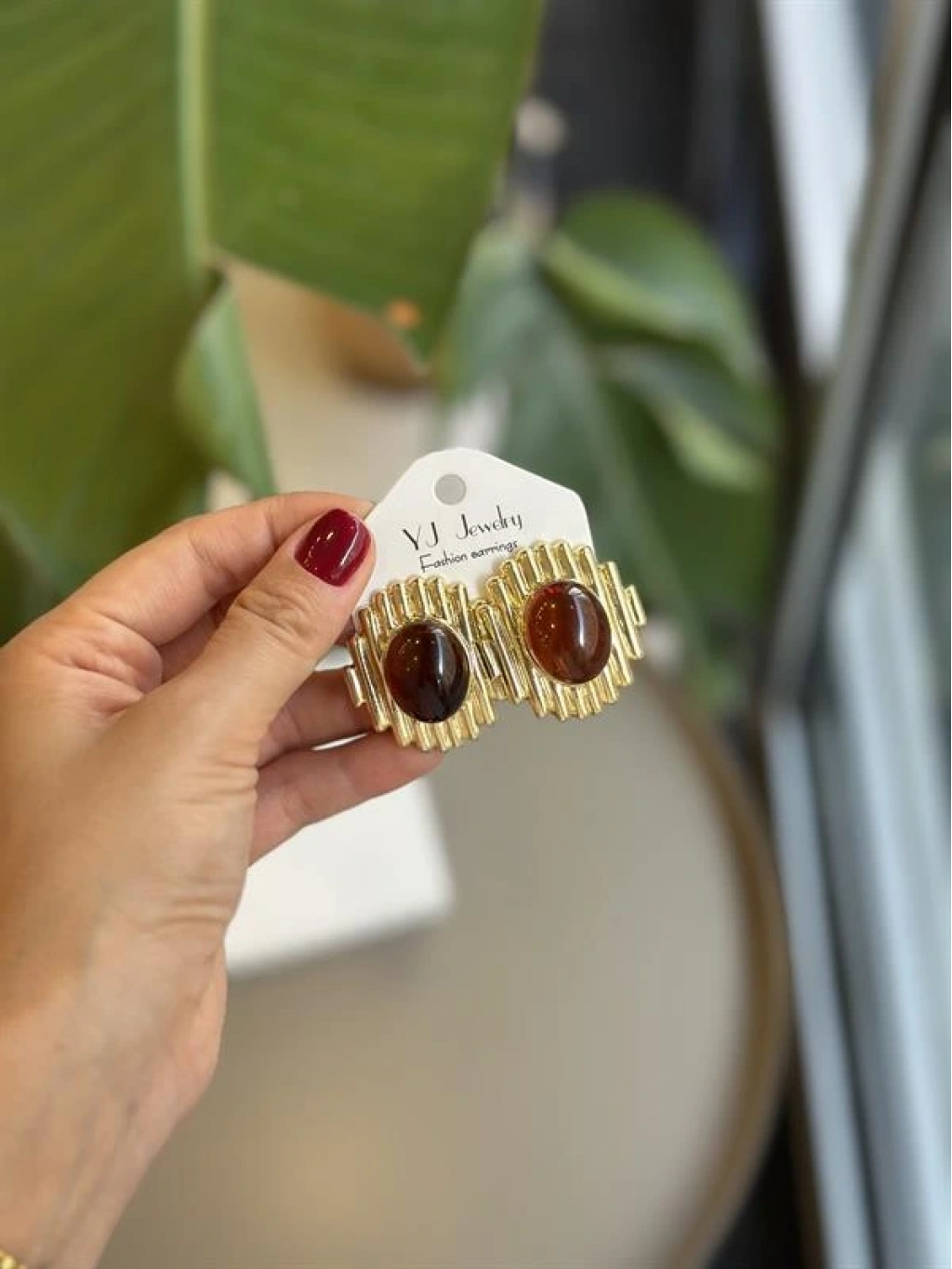 biçomi Sallantılı Taşlı Küpe - Bordo