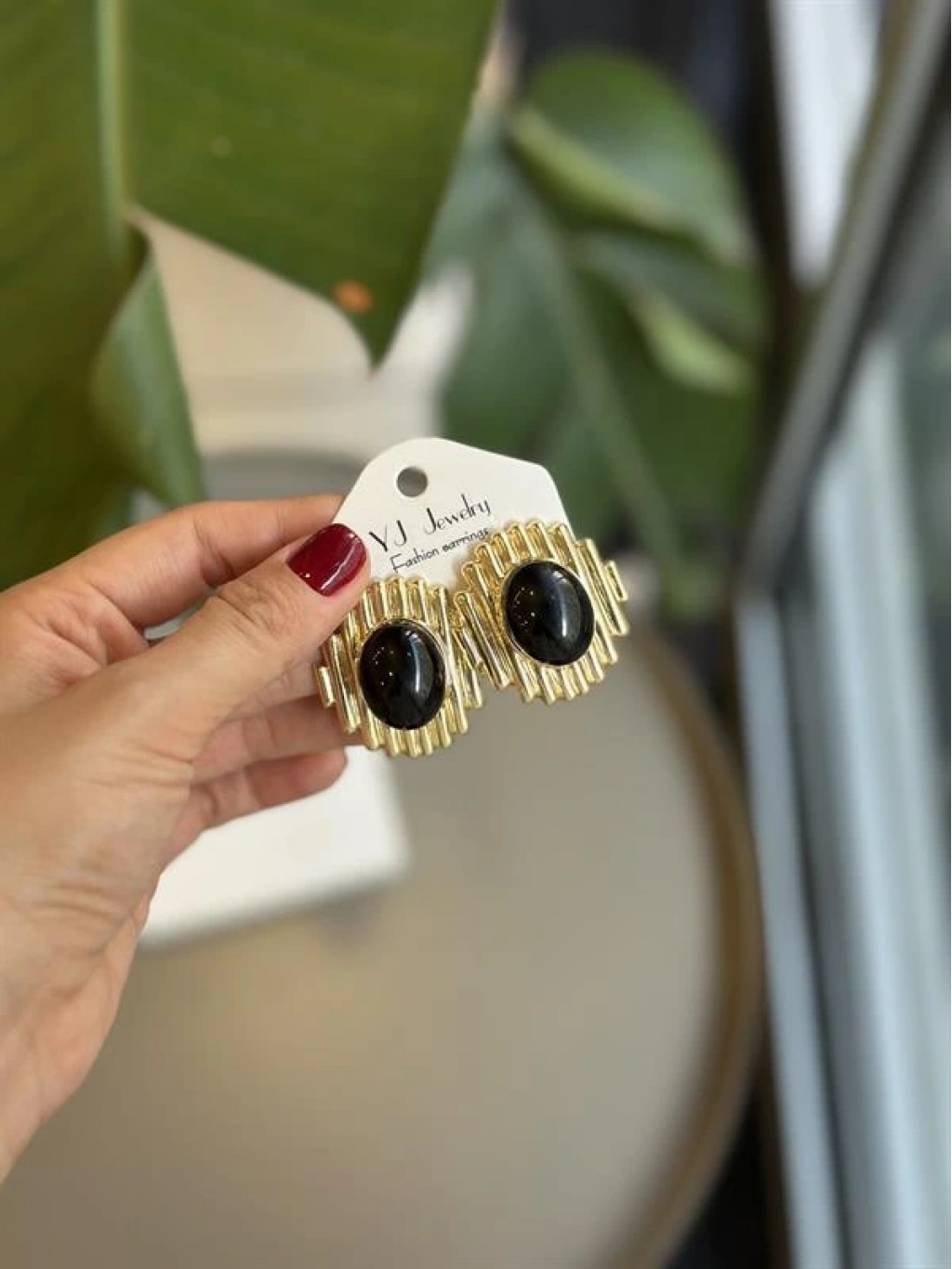 biçomi Sallantılı Taşlı Küpe - Bordo