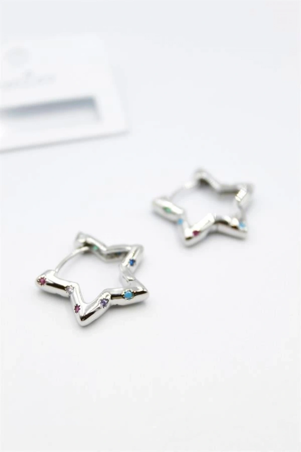 Taşlı Yıldız Küpe - Gümüş