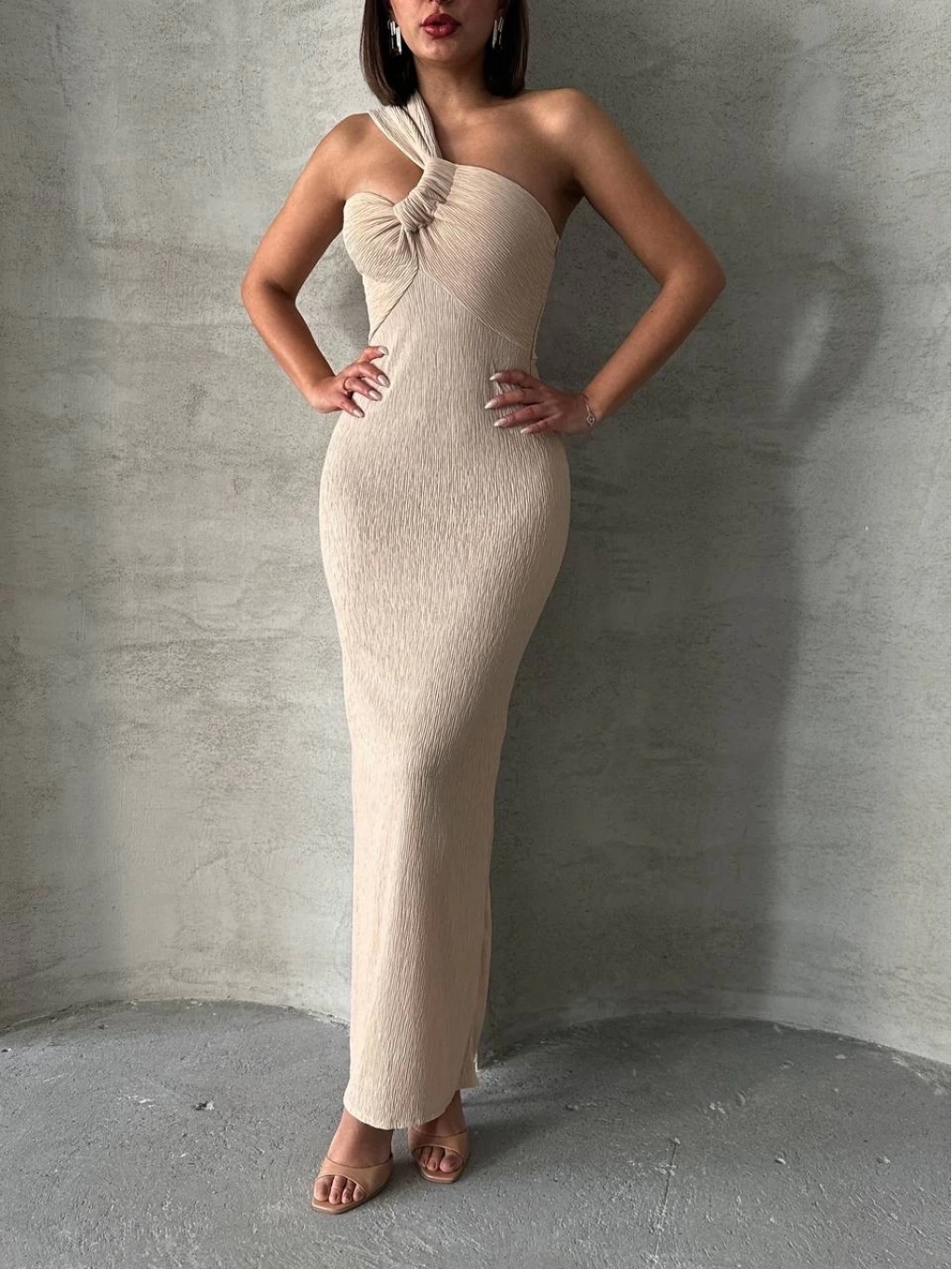 KAZAX tek omuz pliseli elbise ile her şıklık olaya hazırsınız!