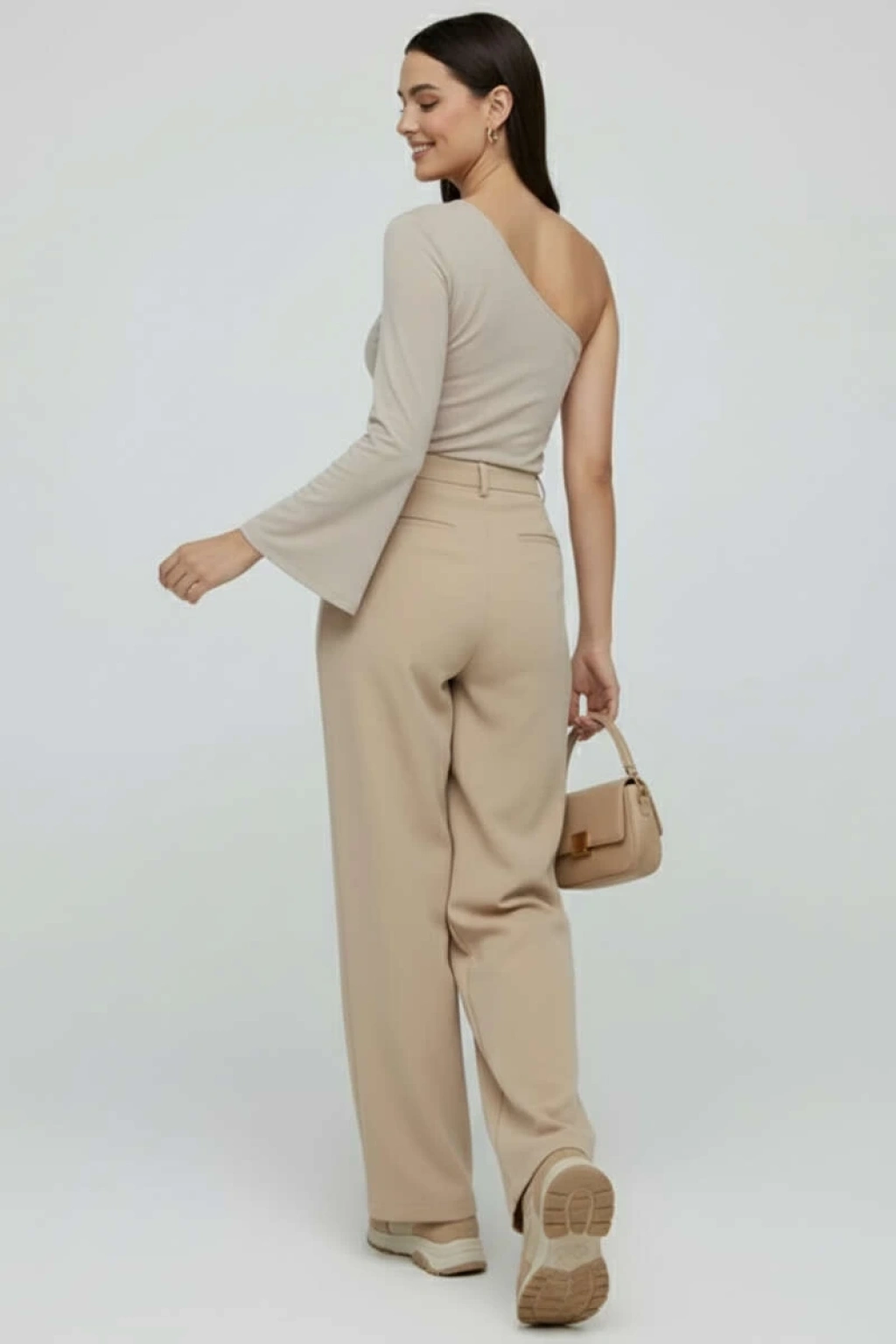 BİÇOMİ Tek Omuzlu Basic Bluz Vizon T4275