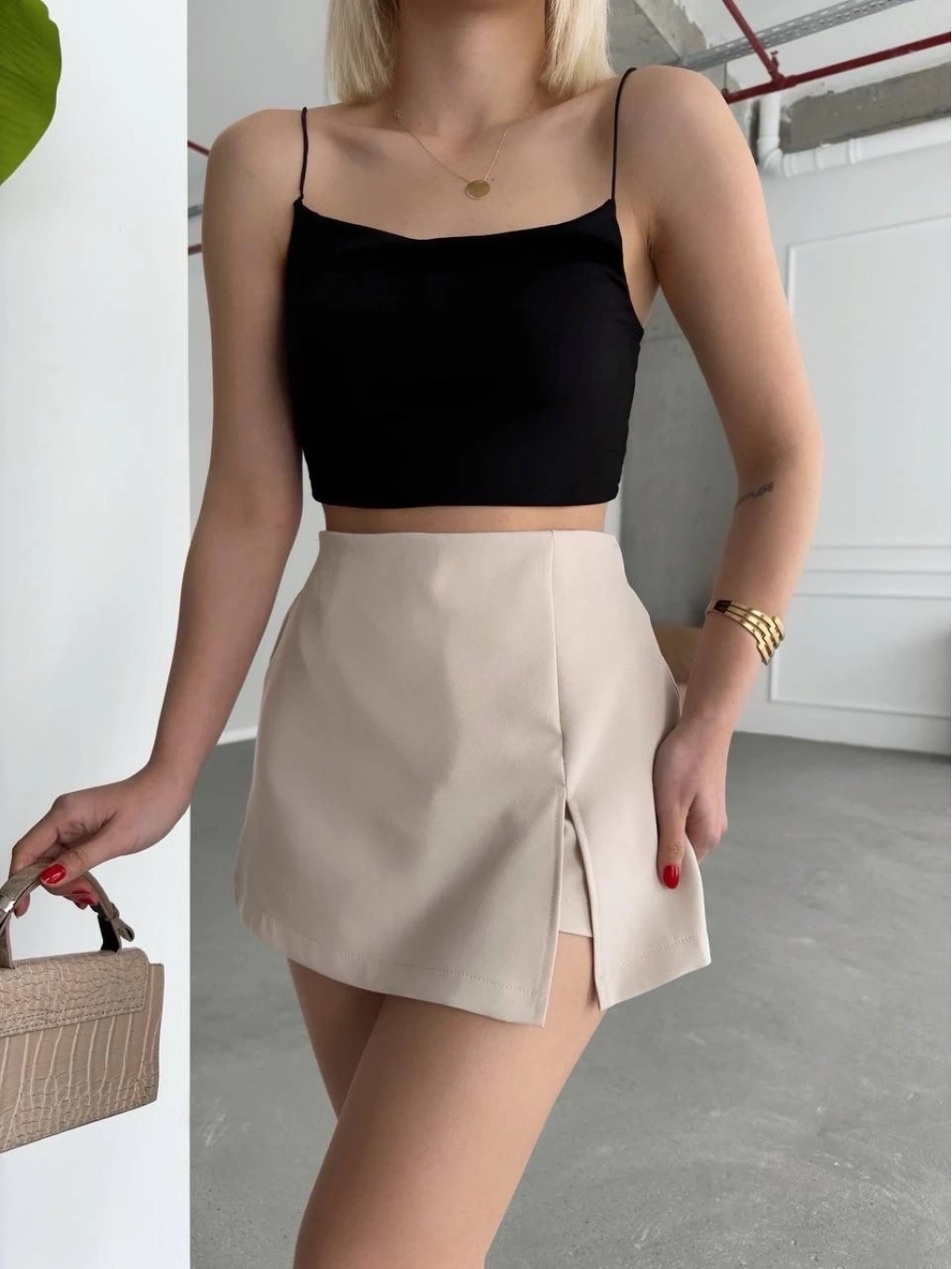 KAZAX marka tek yırtmaçlı şort etek, şıklığı ve rahatlığı bir arada sunar. Yüksek kaliteli malzemesi ve modern tasarımı ile günlük kullanıma uygun bir parçadır.