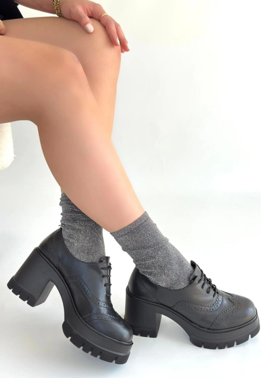 BİÇOMİ Tiwer Siyah Cilt Dolgu Topuk Ayakkabı