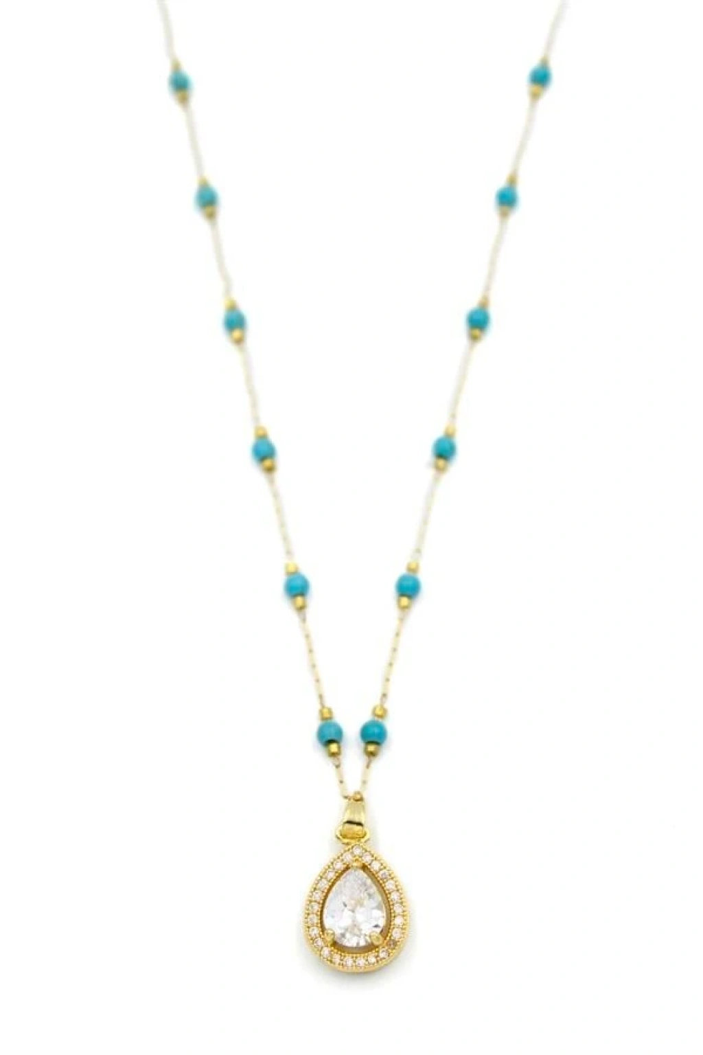 Turkuaz Boncuklu Kolye - Altın