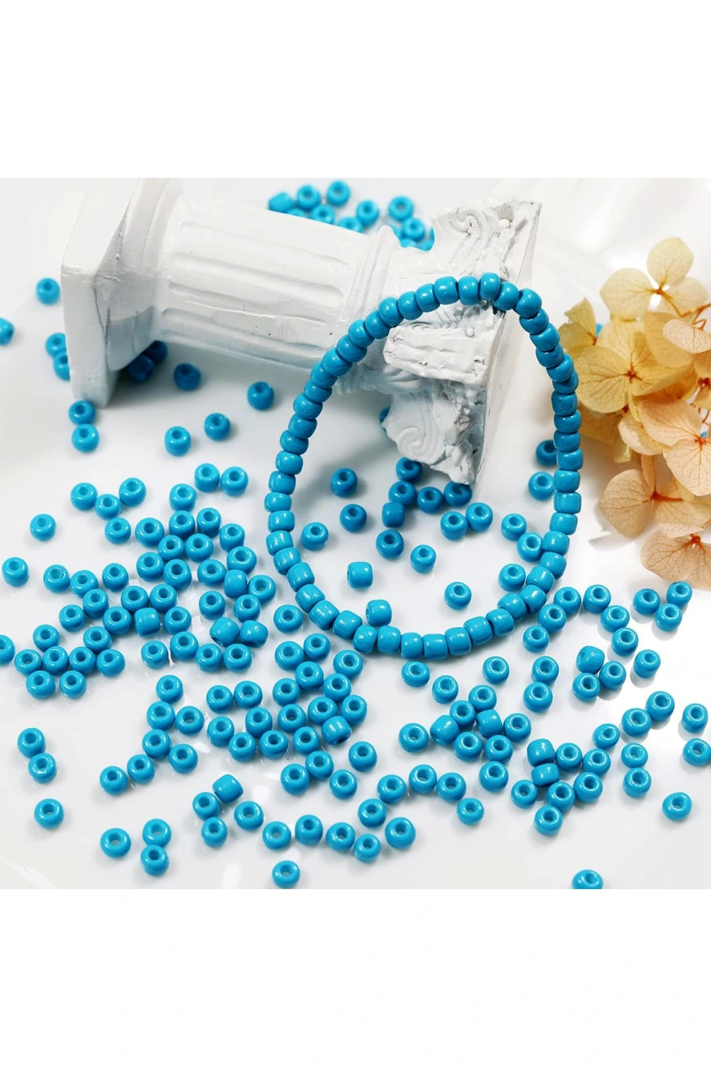 Turquaz Mavi Renk 4 mm Yaklaşık 660 adet / 60 gram Cam Boncuk Oya Yazma Bileklik ve Kolye