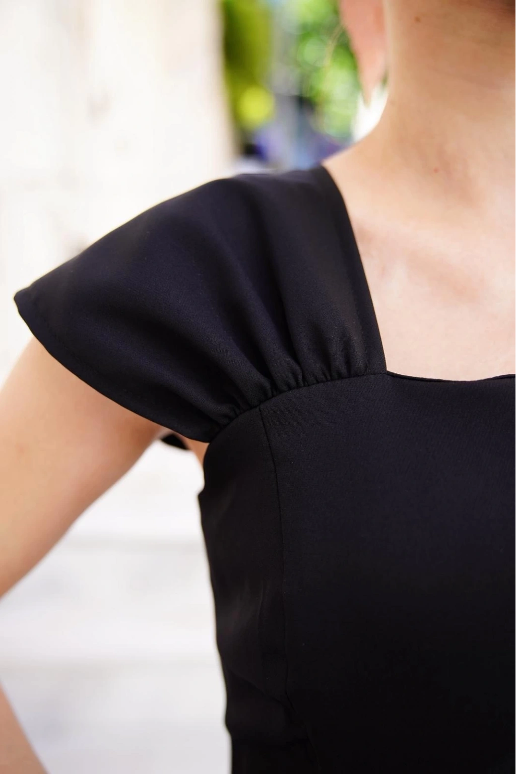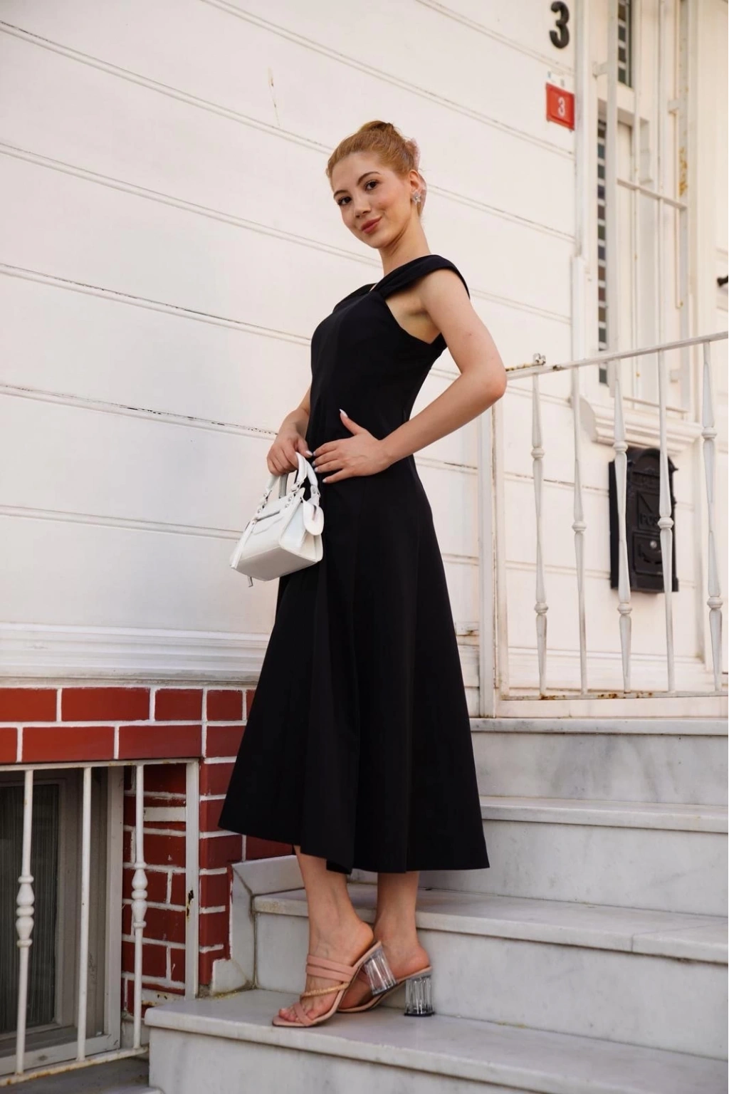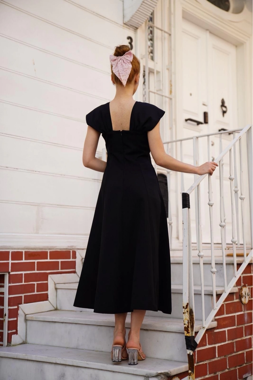 BİÇOMİ Biyeli midi boy elbise siyah A3718