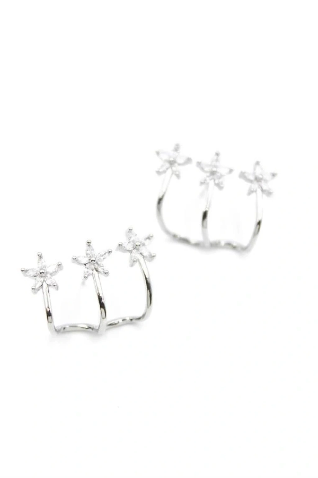 biçomi Üçlü Çiçek Küpe - Gümüş