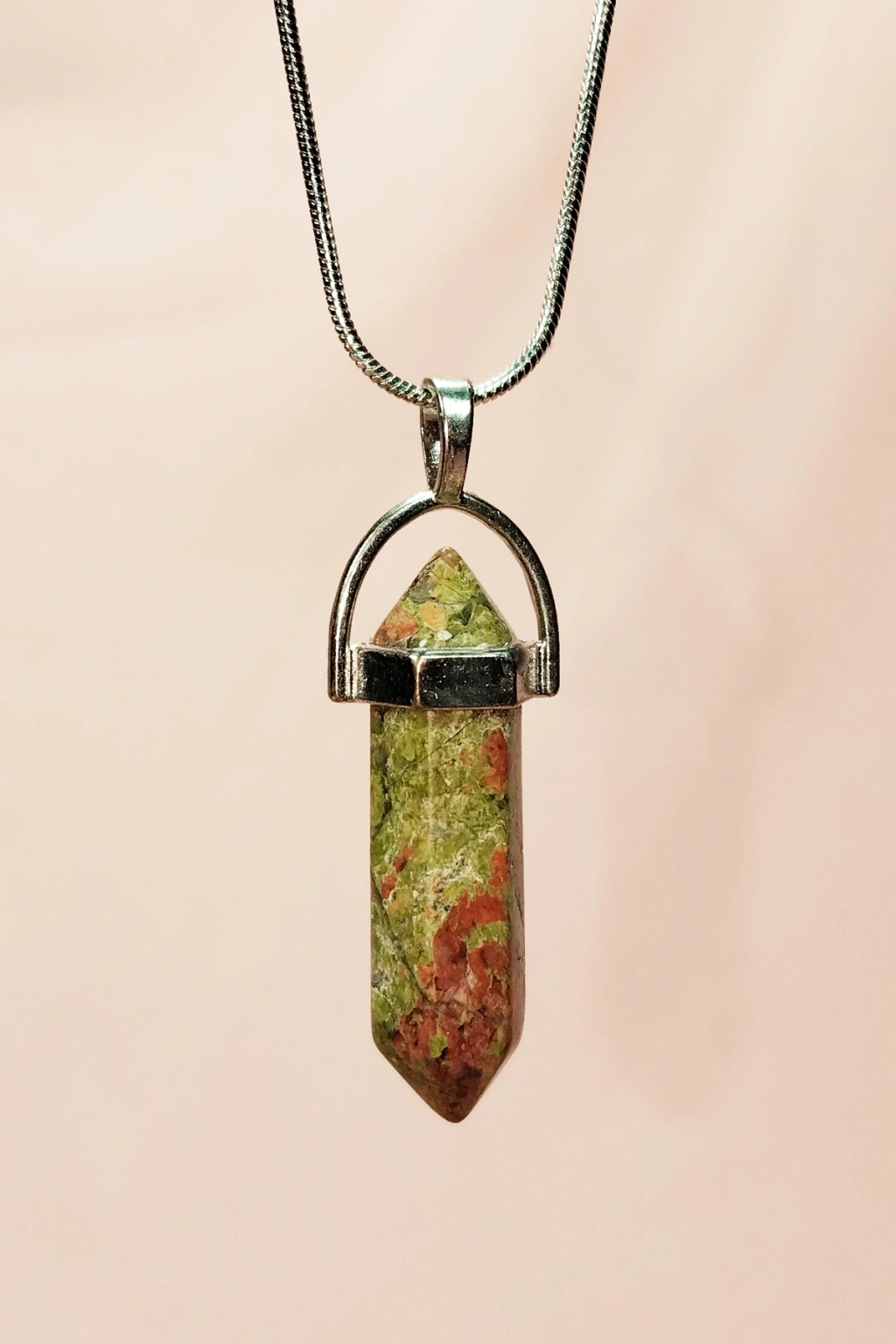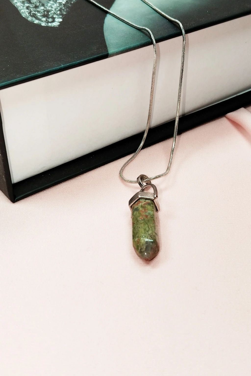 Unakit Doğal Taşı Zincirli El Yapımı Kolye Uç: 3 cm Zincir: 20 cm Kutulu