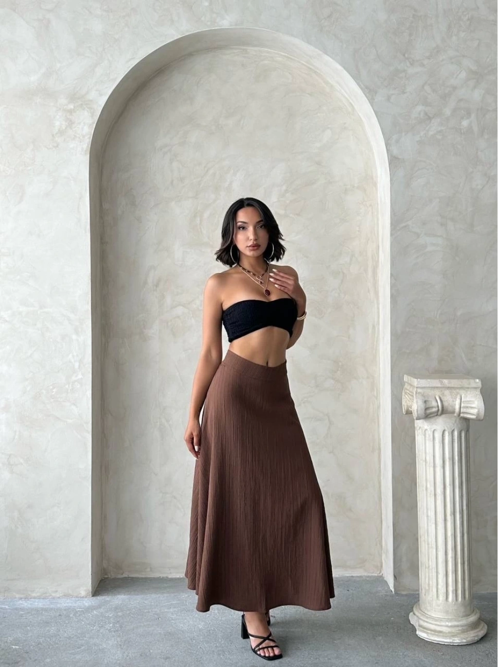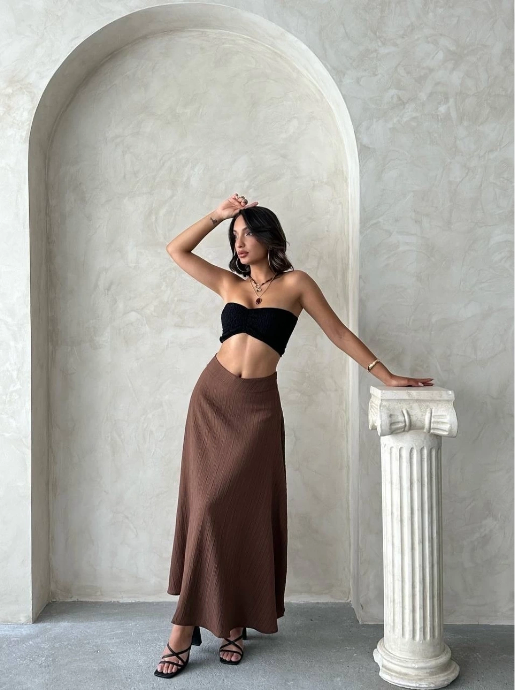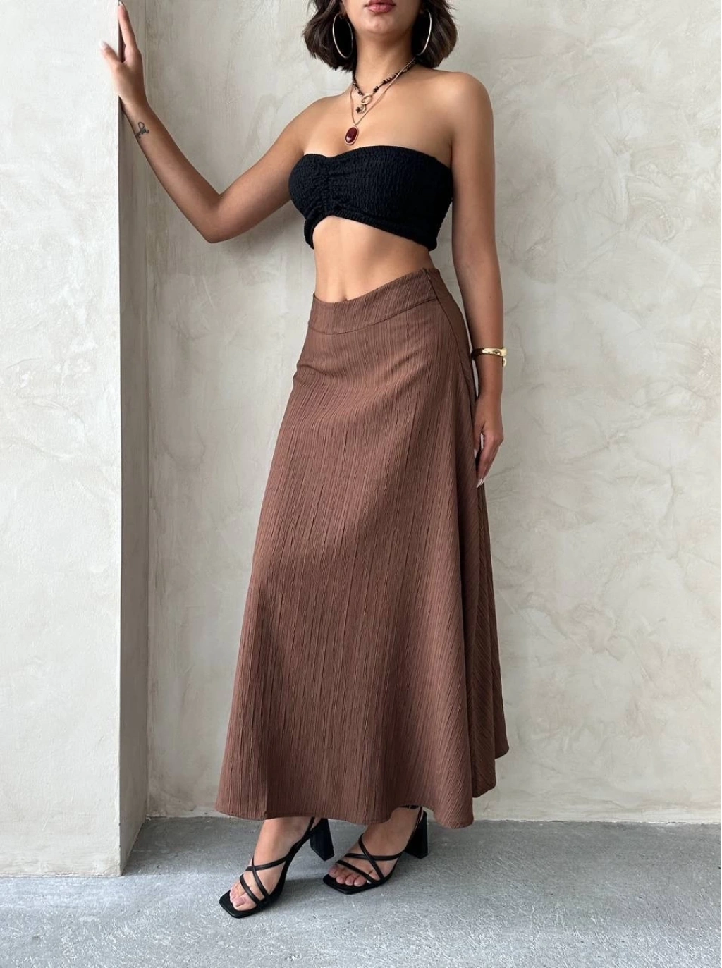 İster günlük kombinlerinizde ister özel davetlerde tercih edin, s255043 uzun astarlı etek ile her zaman şık görüneceksiniz!