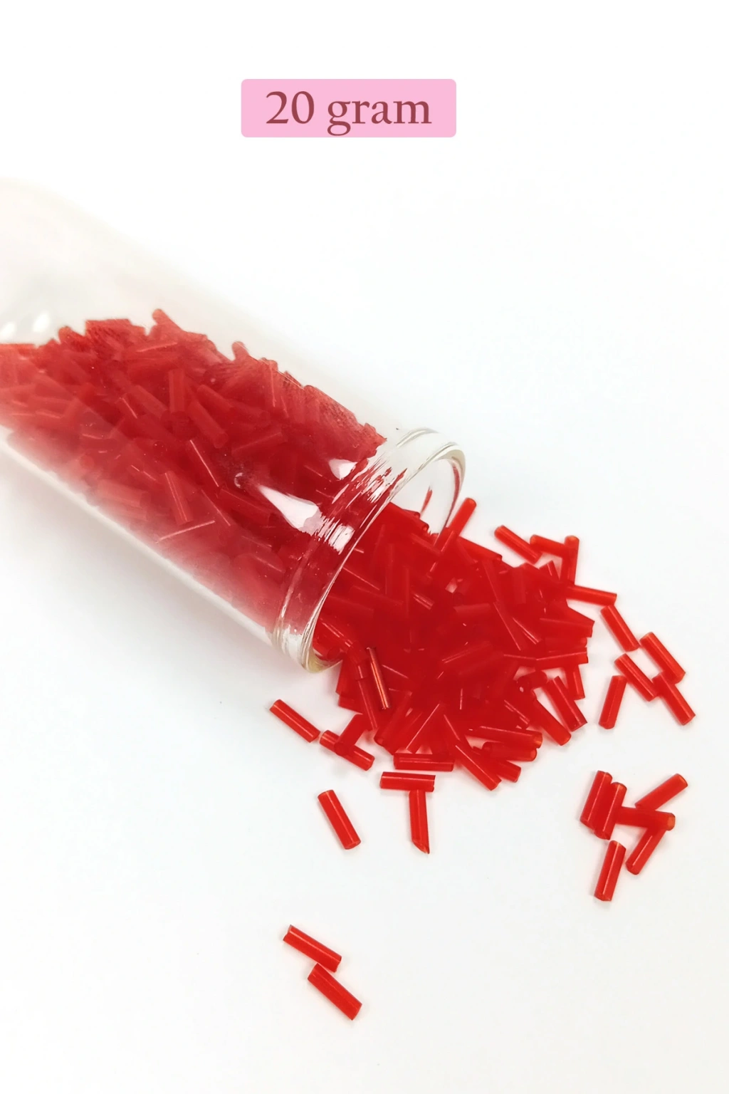 Uzun Boru Kesme Boncuk Çap 2mm Uzunluk 10 mm - 4 Renk - Toplam 80 Gram - BNC431 Renkler : Kırmızı - Şeffaf Kahverengi - Yeşil Beyaz - Gold