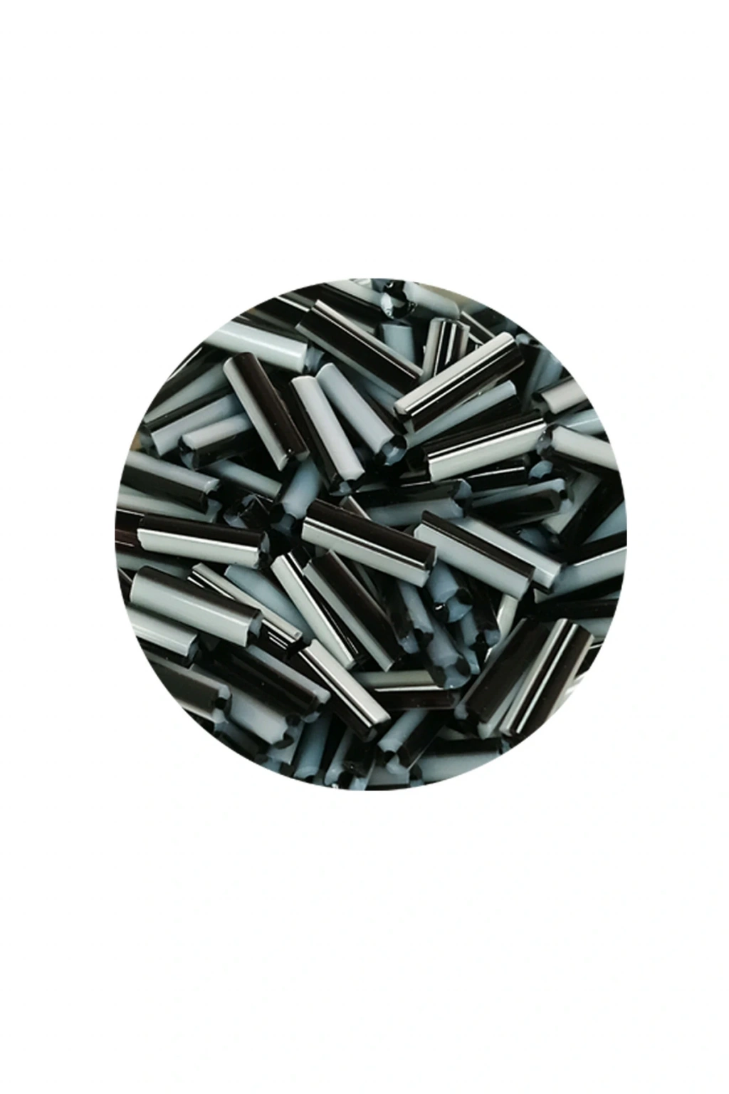 biçomi Uzun Boru Kesme Boncuk Çap 2mm Uzunluk 10 mm - 60 Gram - Siyah Beyaz - BNC290