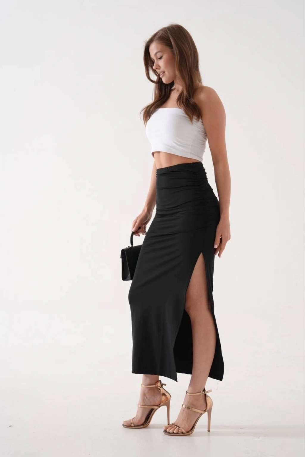 Bu şık ve zarif uzun yırtmaçlı ince kumaş etek siyah rengi ile şıklığınıza şıklık katacak. İnce kumaşı sayesinde rahatlıkla hareket edebilir, gün boyu konforlu bir şekilde kullanabilirsiniz.