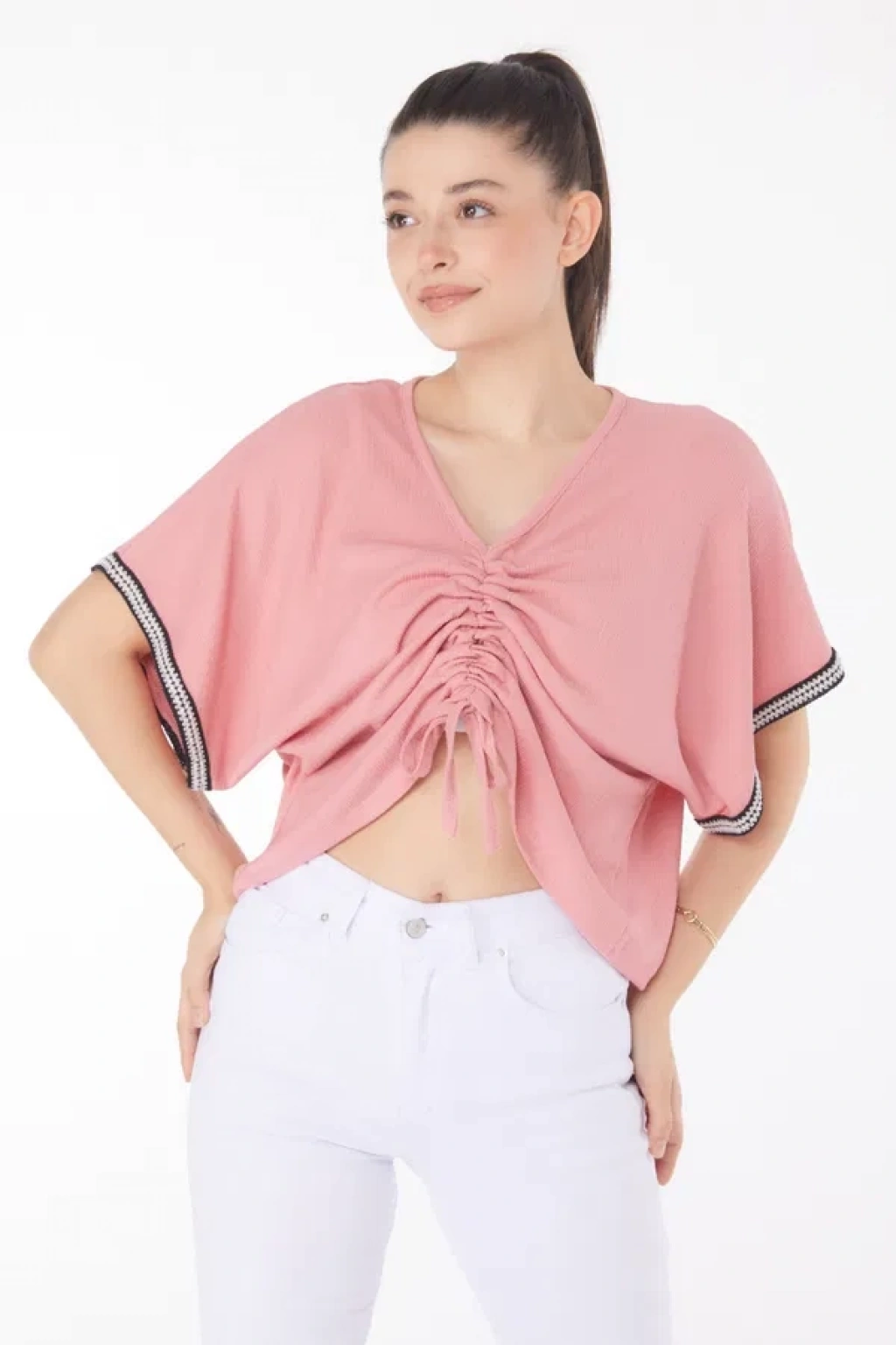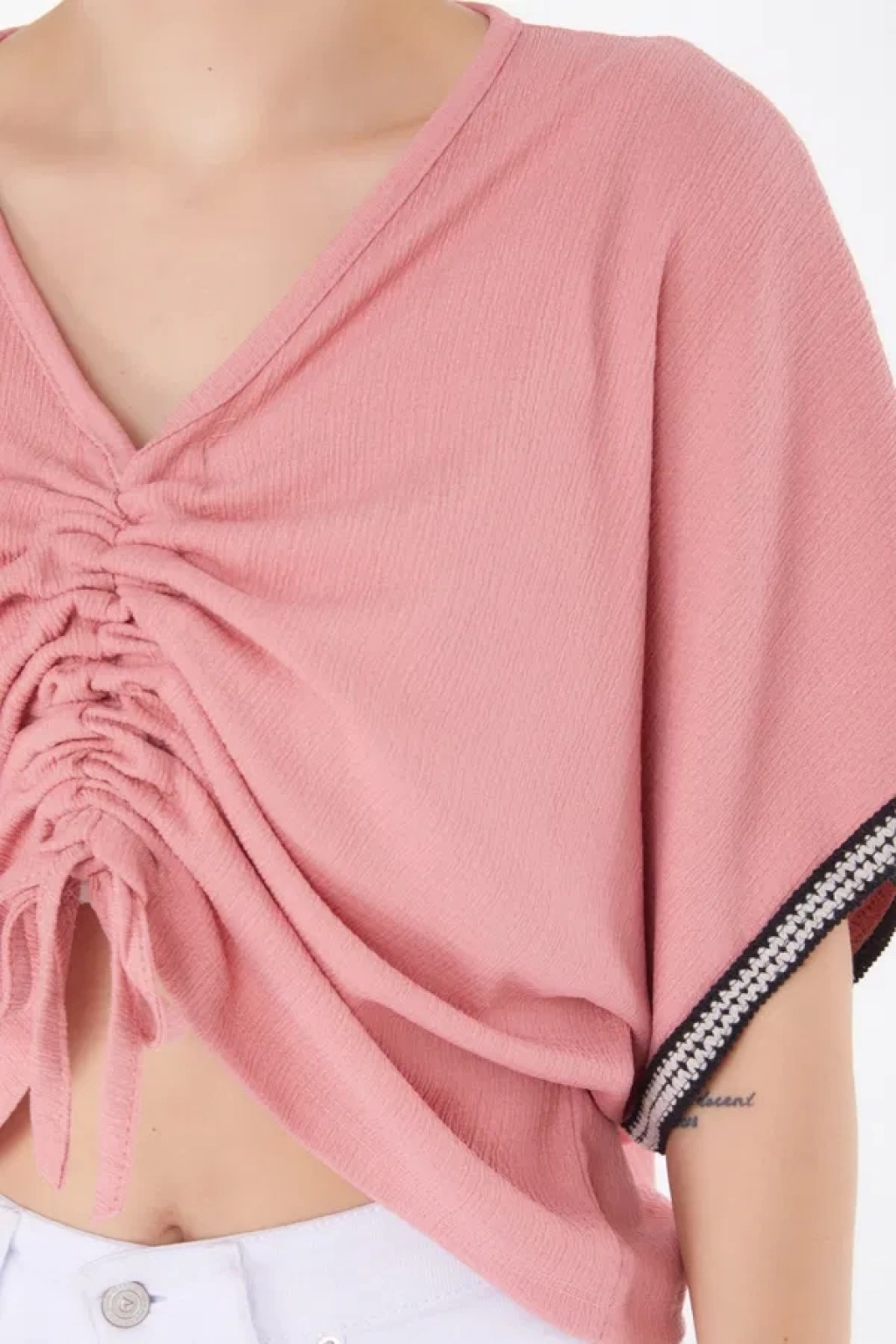 BİÇOMİ V yaka büzgülü detaylı bluz