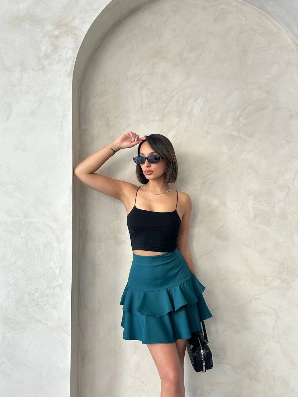 Bu şık ve göz alıcı yeşil eteği günlük şıklığınızda veya özel günlerde tercih edebilir, tarzınıza şıklık katabilirsiniz.