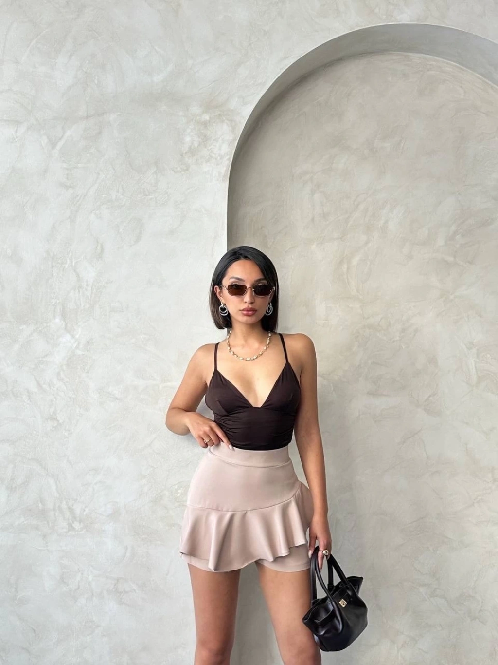 • Bej rengiyle her kombinle uyum sağlar, farklı üstlerle kolayca kombinlenebilir.