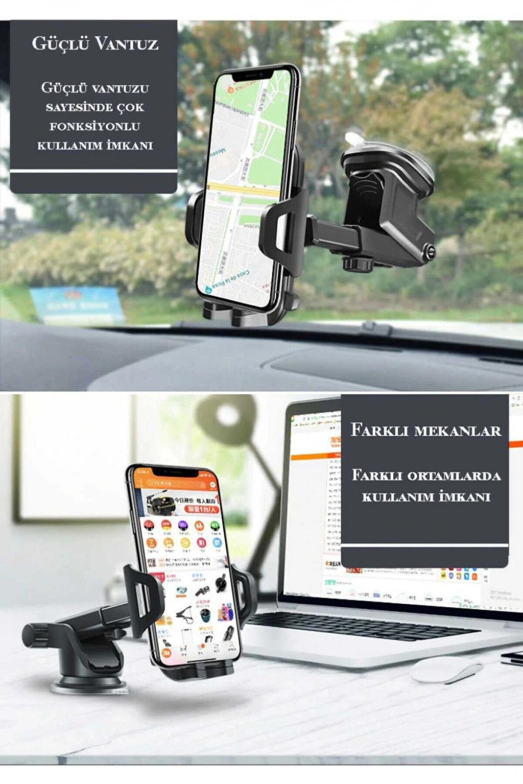 Vantuzlu Araç İçi Uzayan Ayarlanabilir Telefon Tutucu Güçlü vantuzu sayesinde araç içi titreşim ve sarsıntılara dayanıklıdır. Oynayan başlık ve uzayan gövde ile en uygun pozisyona ayarlanabilir. Alt destek ve yan desteklerle beraber telefonunuzu sabit tutar ve düşmelere karşı korur. Araba cam veya göğüs bölgesine monte edilebilir. Kolay kullanım ile güvenli sürüş sağlar. Ekstra güçlü tutuş. Hafif ve ergonomik tasarım Genişleyen yanal destekleri sayesinde her model telefona uyumludur. Navigasyon ve eller serbest modunda kullanım için sürüş için idealdir. Paket içeriği: 1 adet Vantuzlu Araç İçi Uzayan Ayarlanabilir Telefon Tutucu