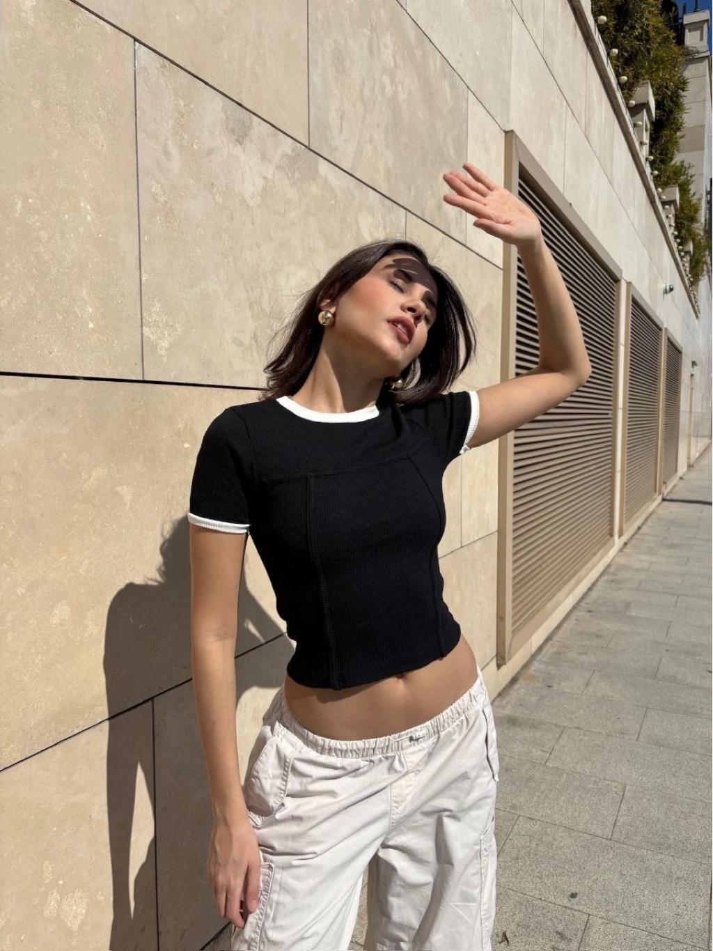 KAZAX'in yaka kol garnili ön parçalı bluzu, şıklığı modern detaylarla buluşturuyor.