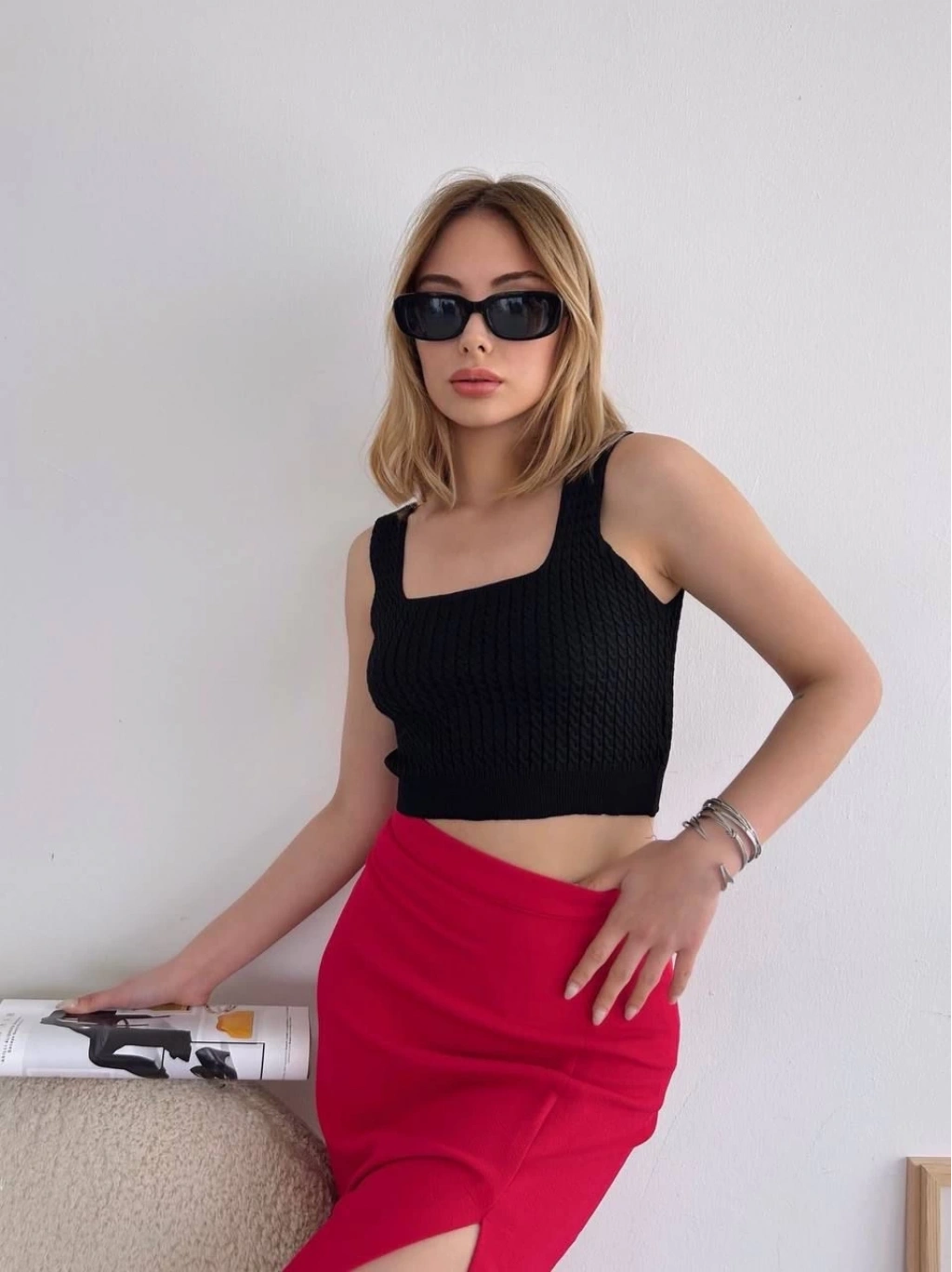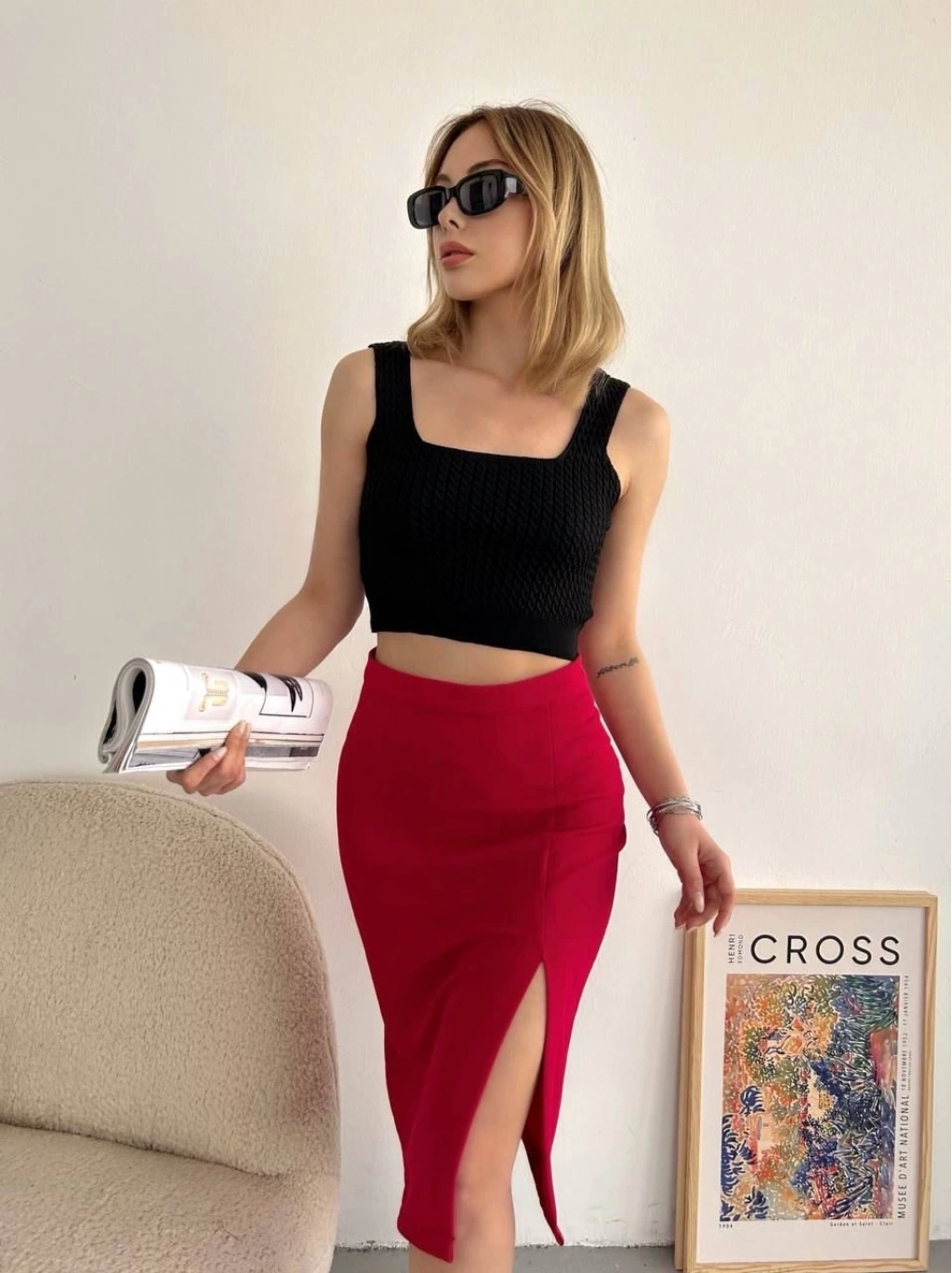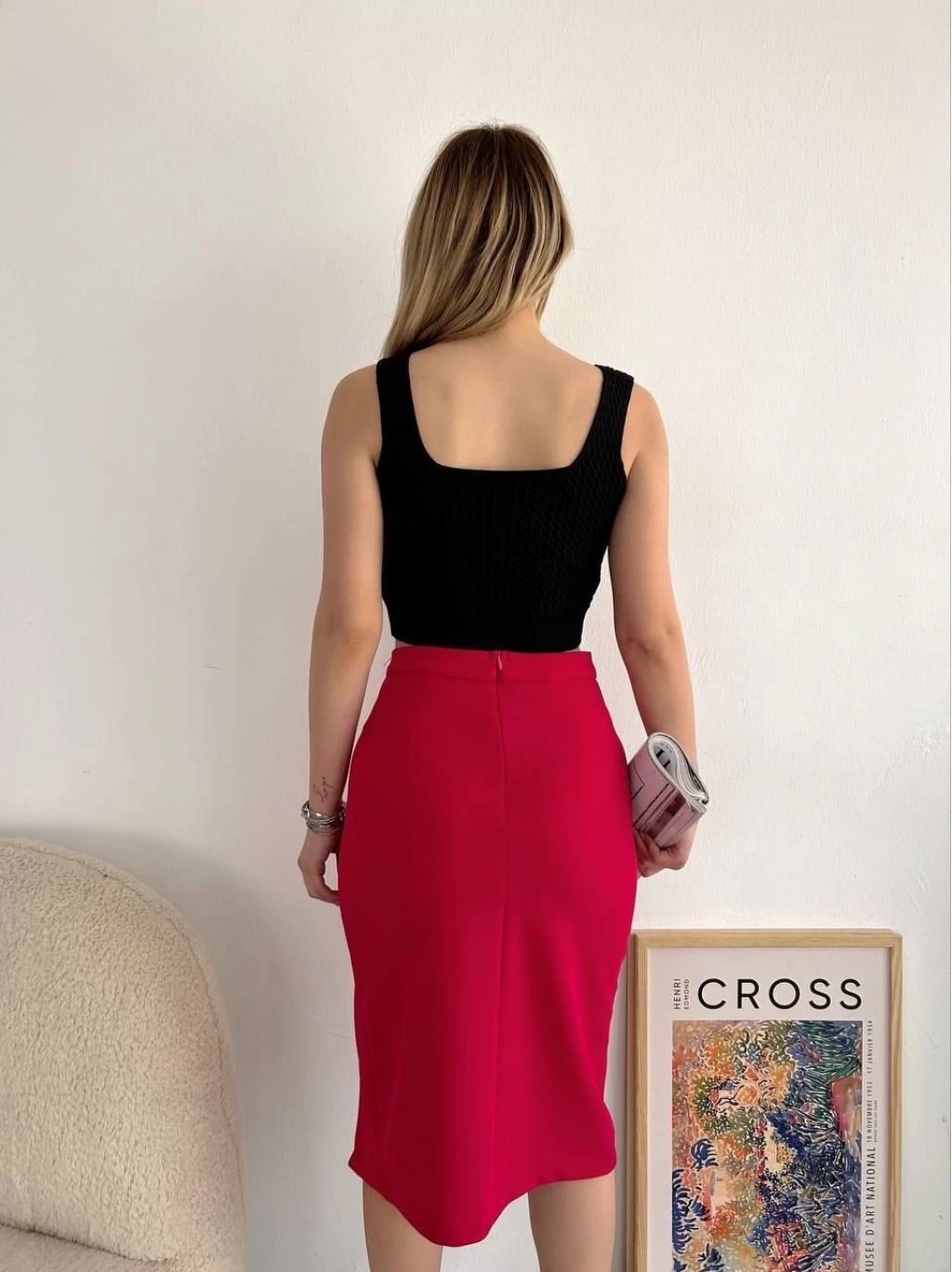 Yırtmaçlı esnek kumaş midi boy etek kırmızı, gardırobunuzda modern ve şık bir seçenek sunuyor. İster günlük hayatta isterseniz özel davetlerde rahatlıkla tercih edebileceğiniz bu etek, hem şıklığı hem de konforu bir arada sunar.