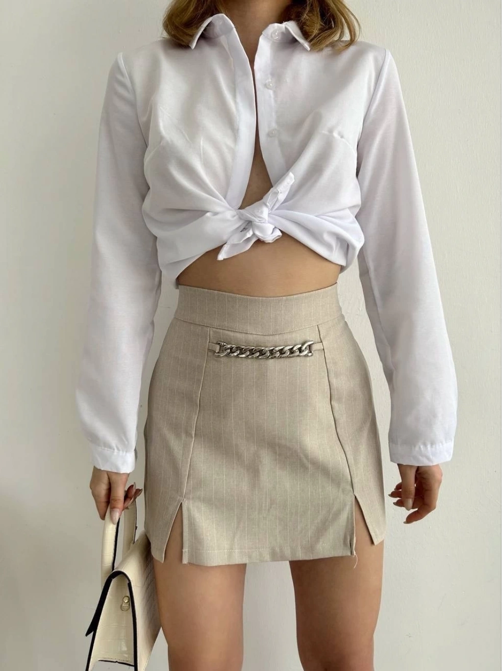 • Bel kısmında bulunan detaylı zincir ile dikkat çeker.