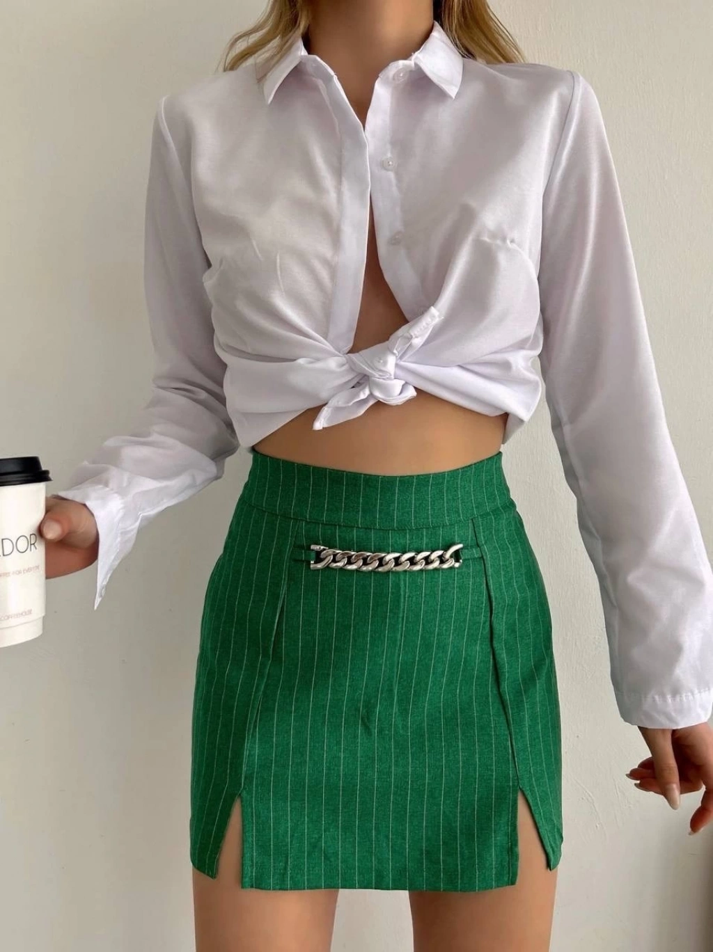 KAZAX marka zincir detaylı çizgili şort etek, şıklık ve rahatlık arayan kadınların tercihi.