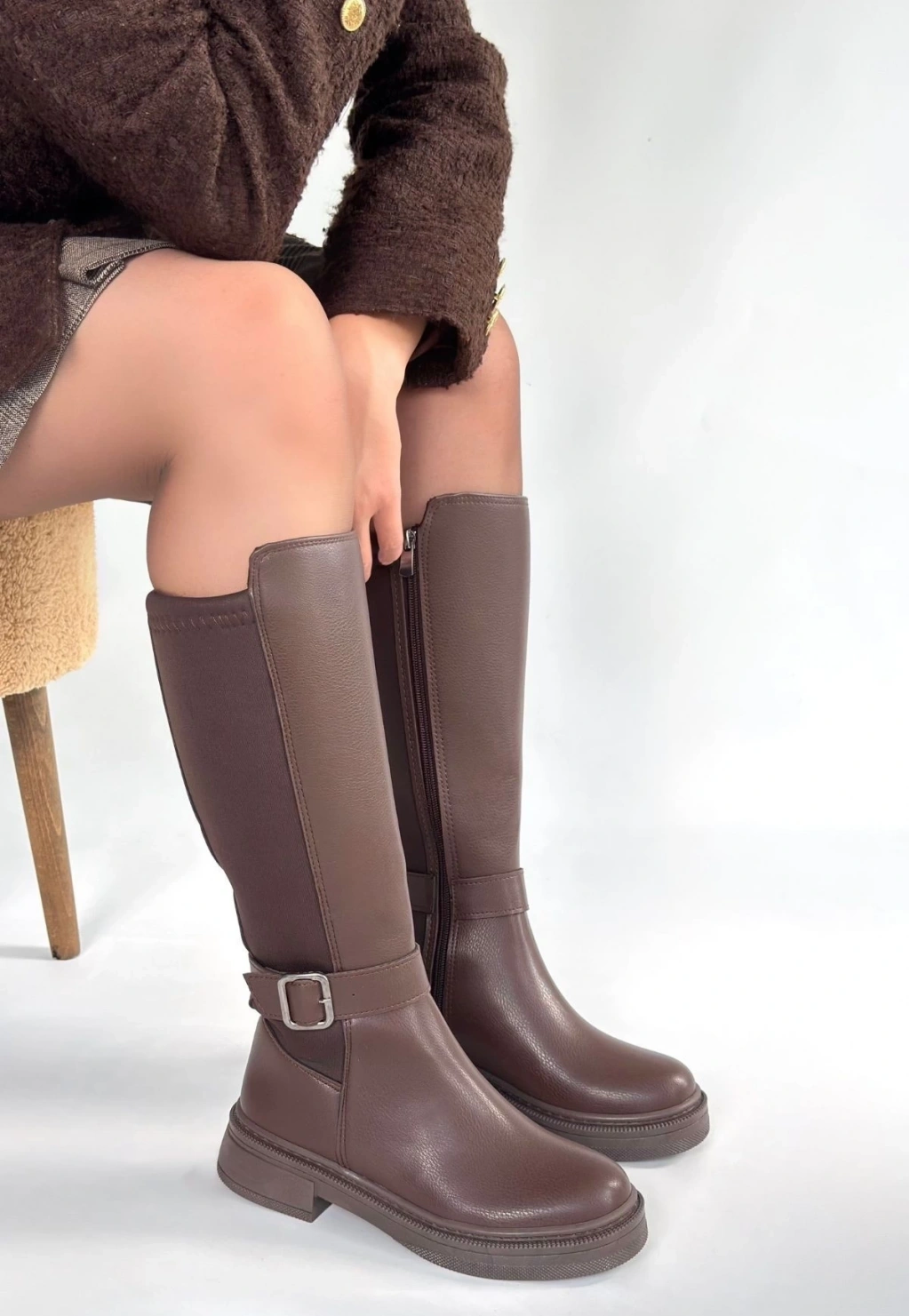 Detay: Topuklu Yandan Fermuarlı Diz Altı Çizme