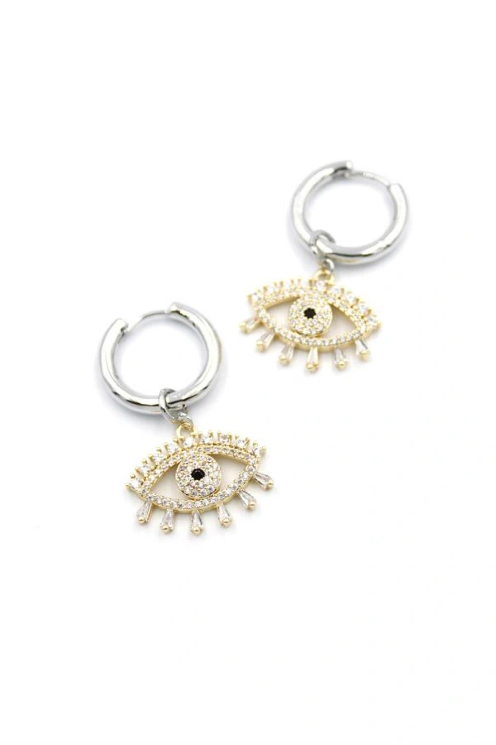 biçomi Zirkon Taşlı Göz Halka Küpe - Altın