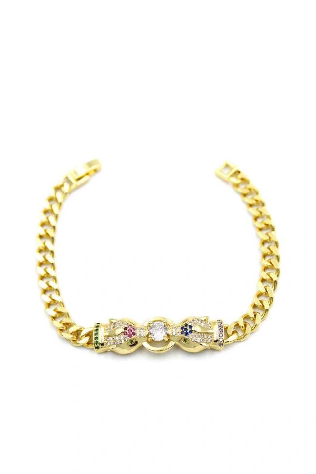 biçomi Zirkon Taşlı Leopar Bileklik - Altın