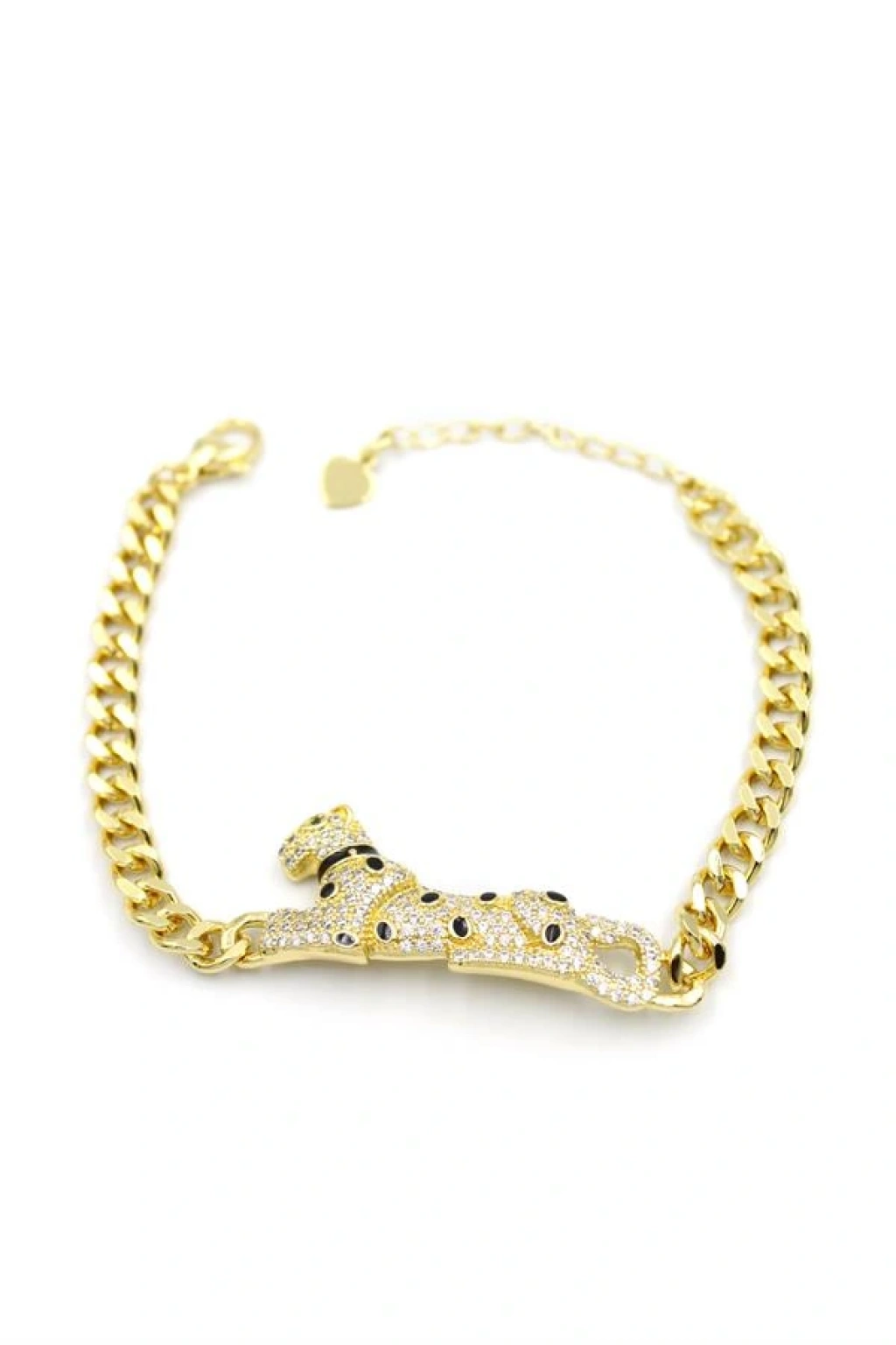 biçomi Zirkon Taşlı Leopar Bileklik - Altın