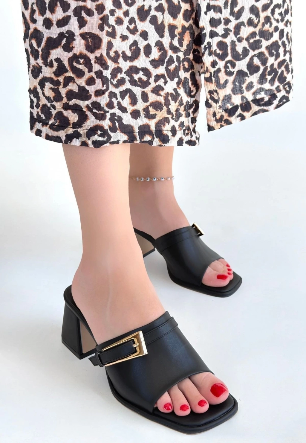 BİÇOMİ Ziva Siyah Cilt Topuklu Terlik