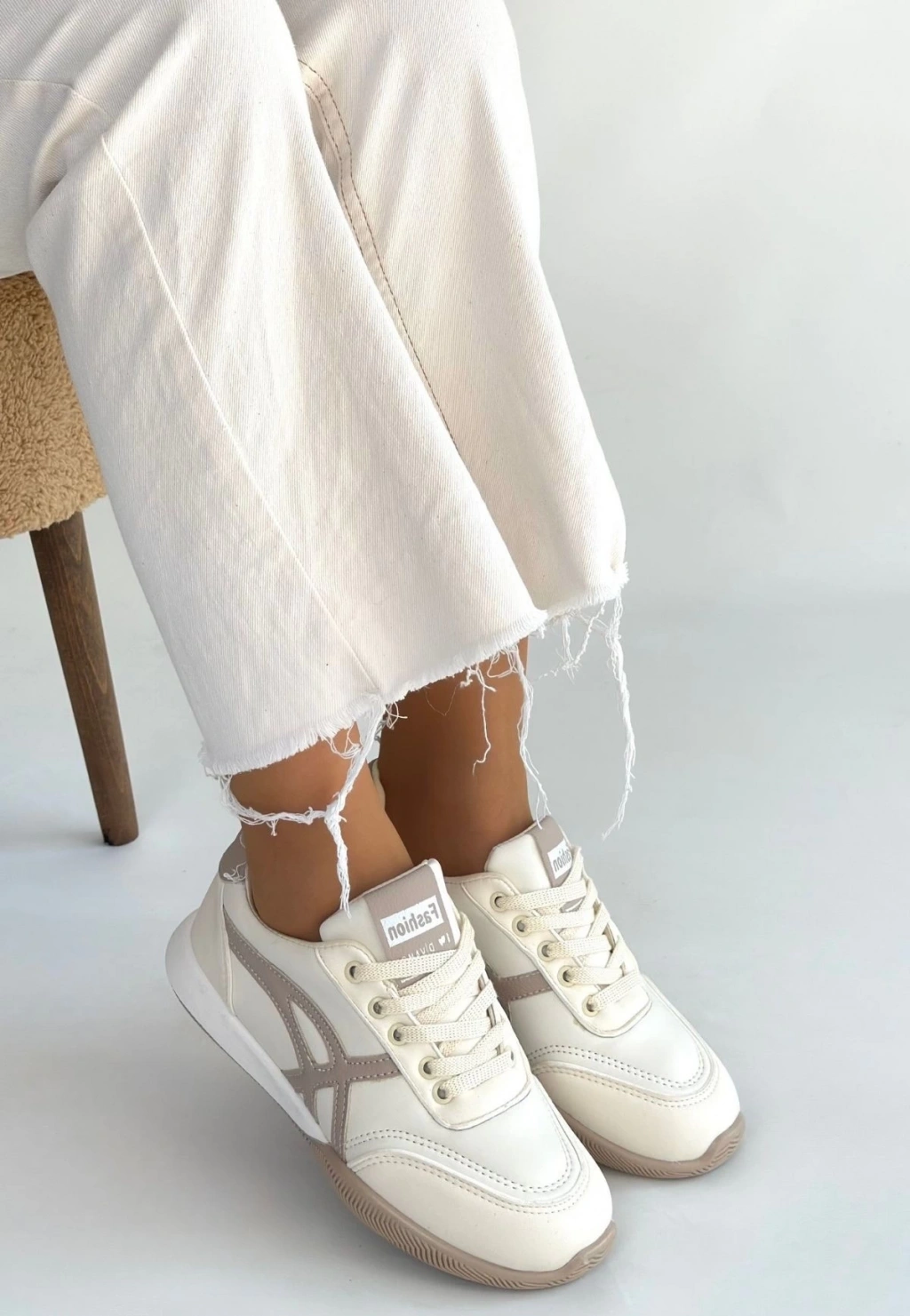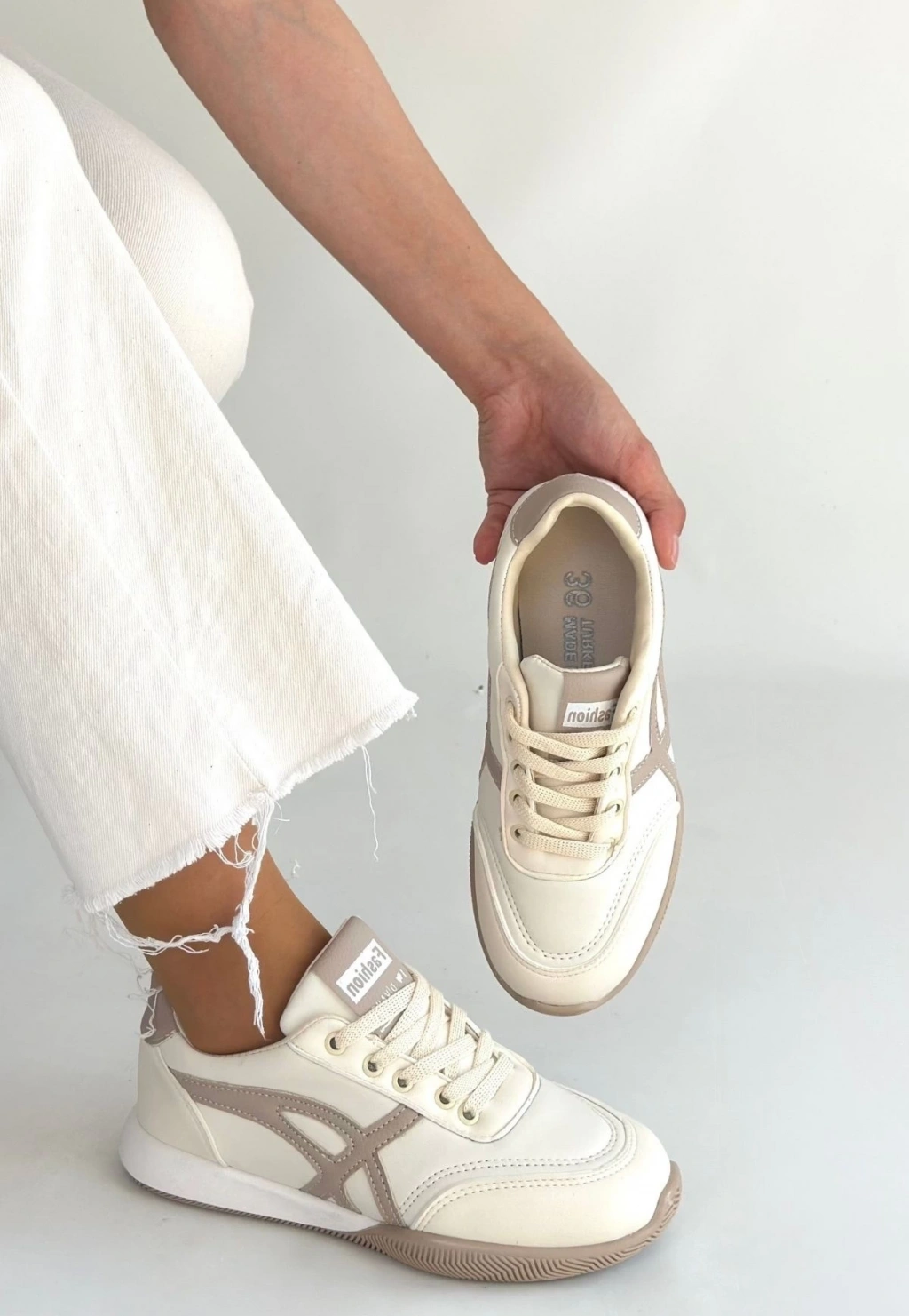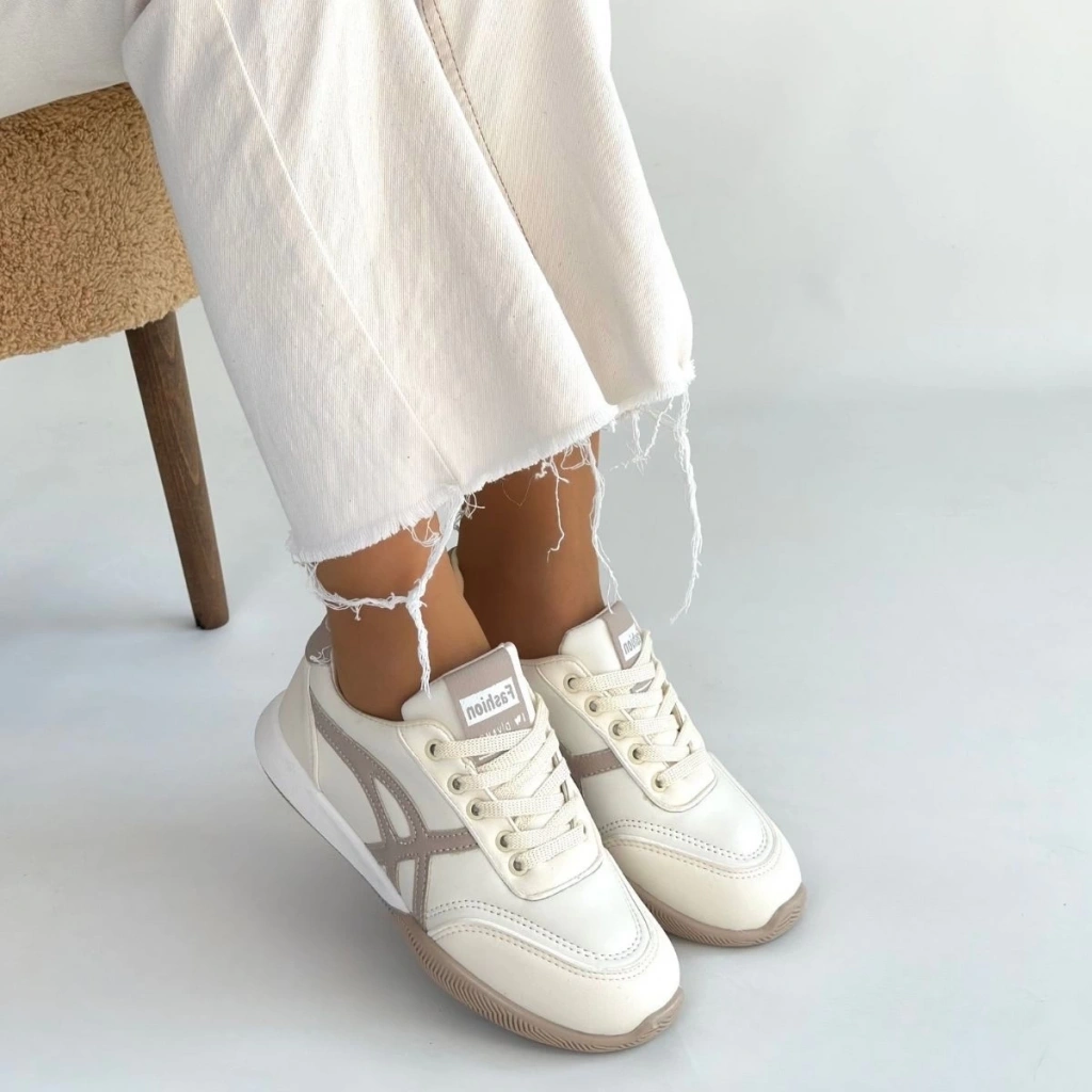 BİÇOMİ Zlay Bej Cilt Vizon Detaylı Bağcıklı Spor Ayakkabı