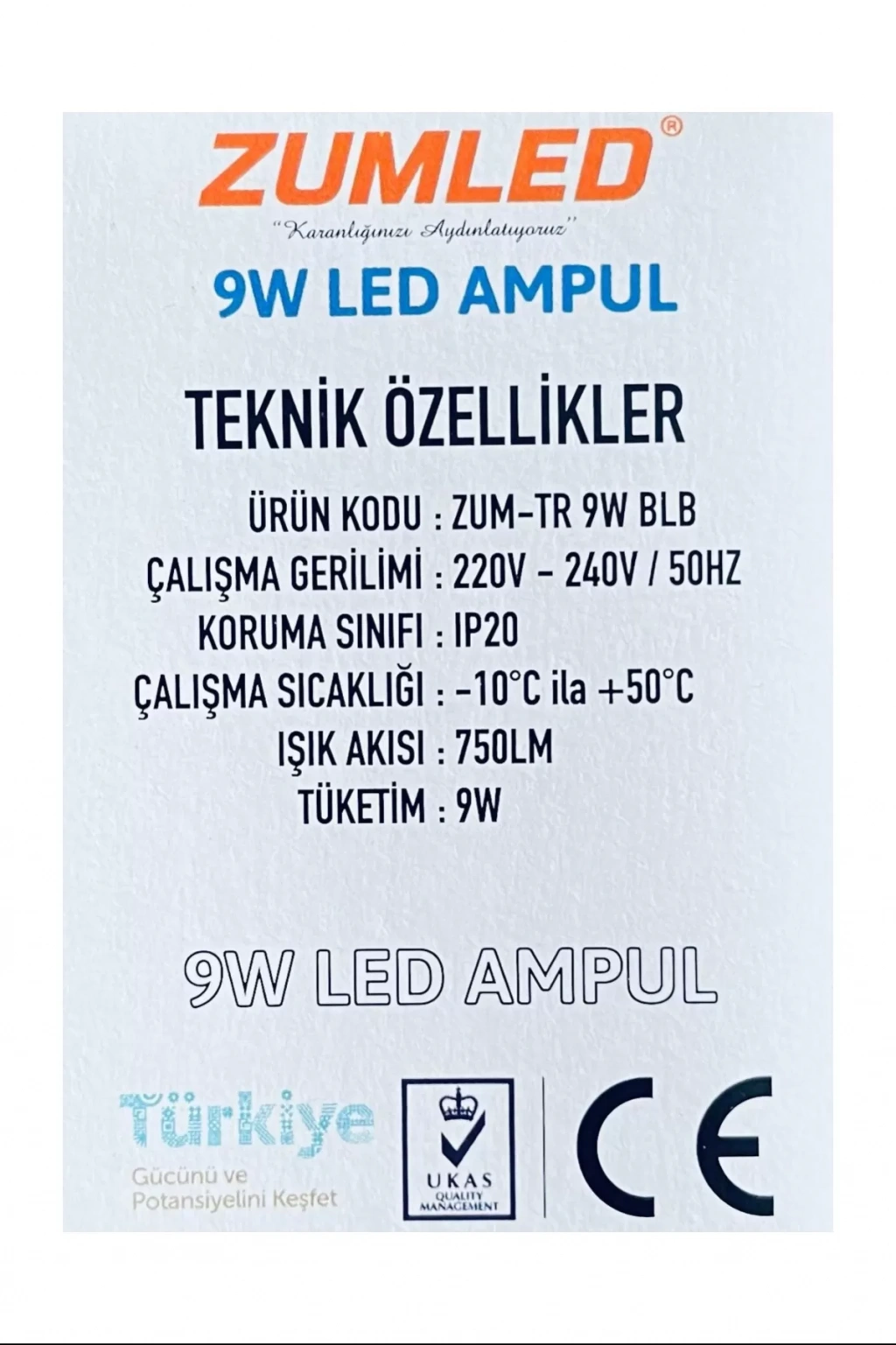 Zumled 9W Beyaz LED Ampul Biçomi-201 8690001123451 Paket İçeriği : 1 Adet