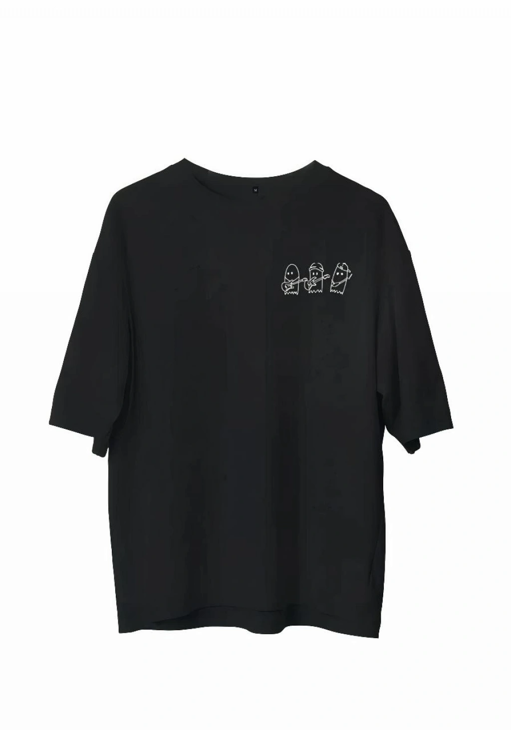 Bisiklet Yaka Baskılı Oversize T-Shirt - Siyah -