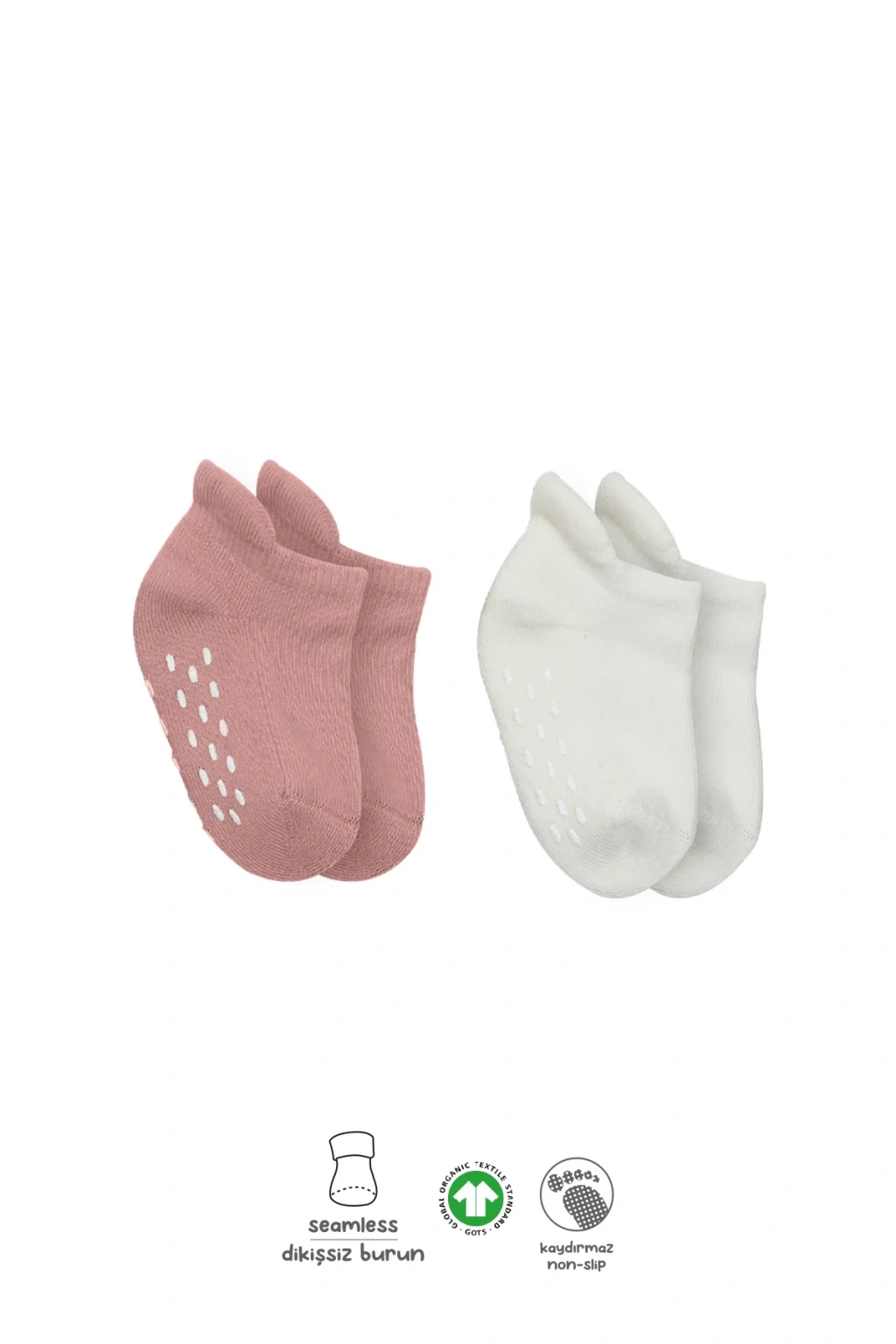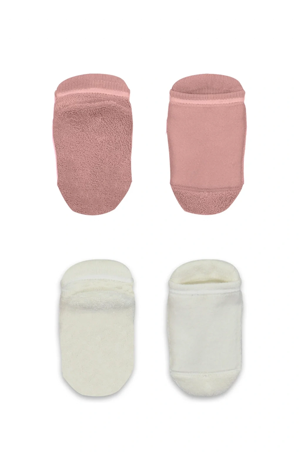 2'li Altı Havlu Sneakers Kaymaz Çorap 20501 Ekru Pudra