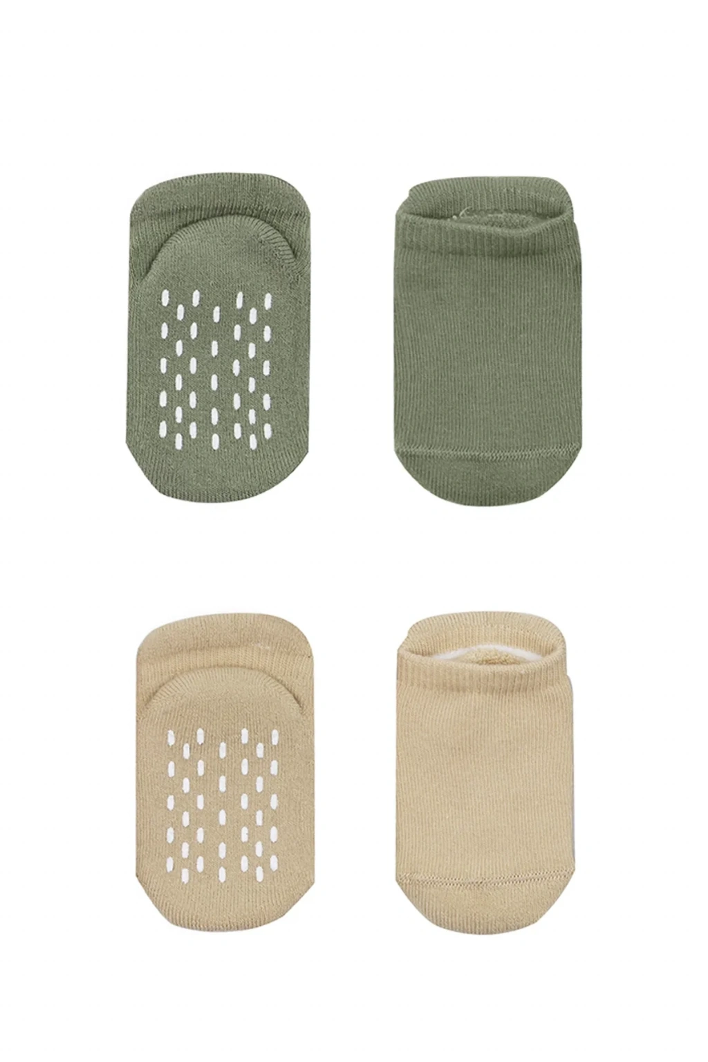 2'li Altı Havlu Sneakers Kaymaz Çorap 20501 Nil Bej
