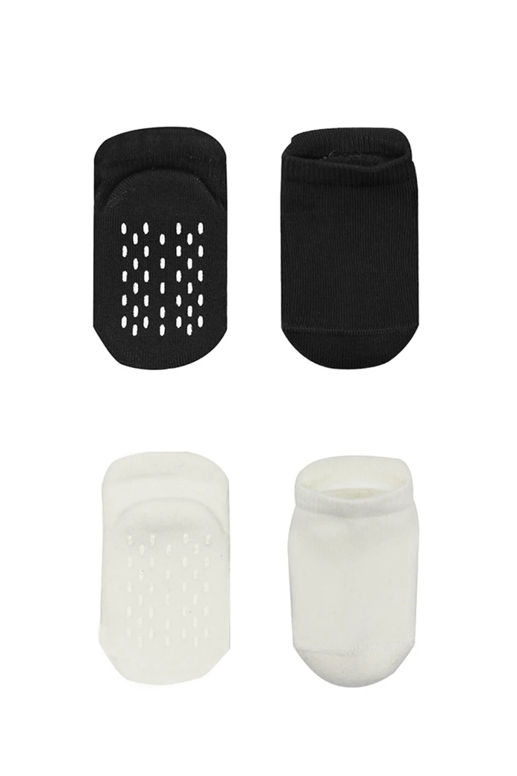 2'li Altı Havlu Sneakers Kaymaz Çorap 20501 Siyah Ekru