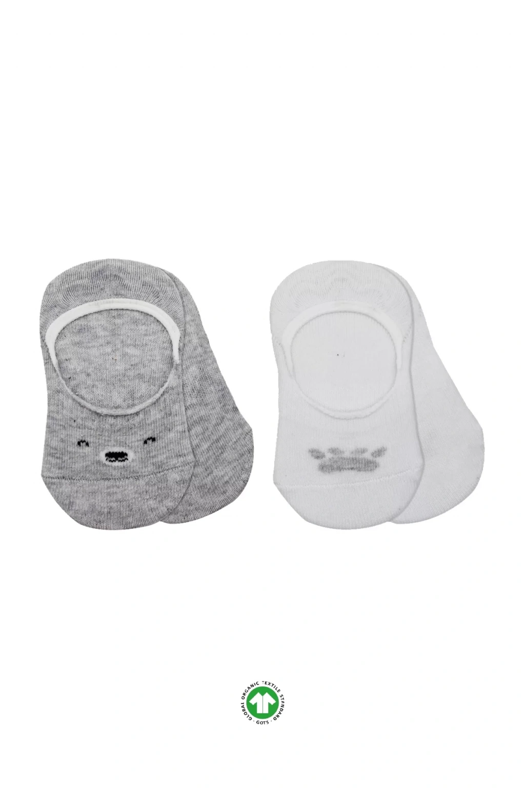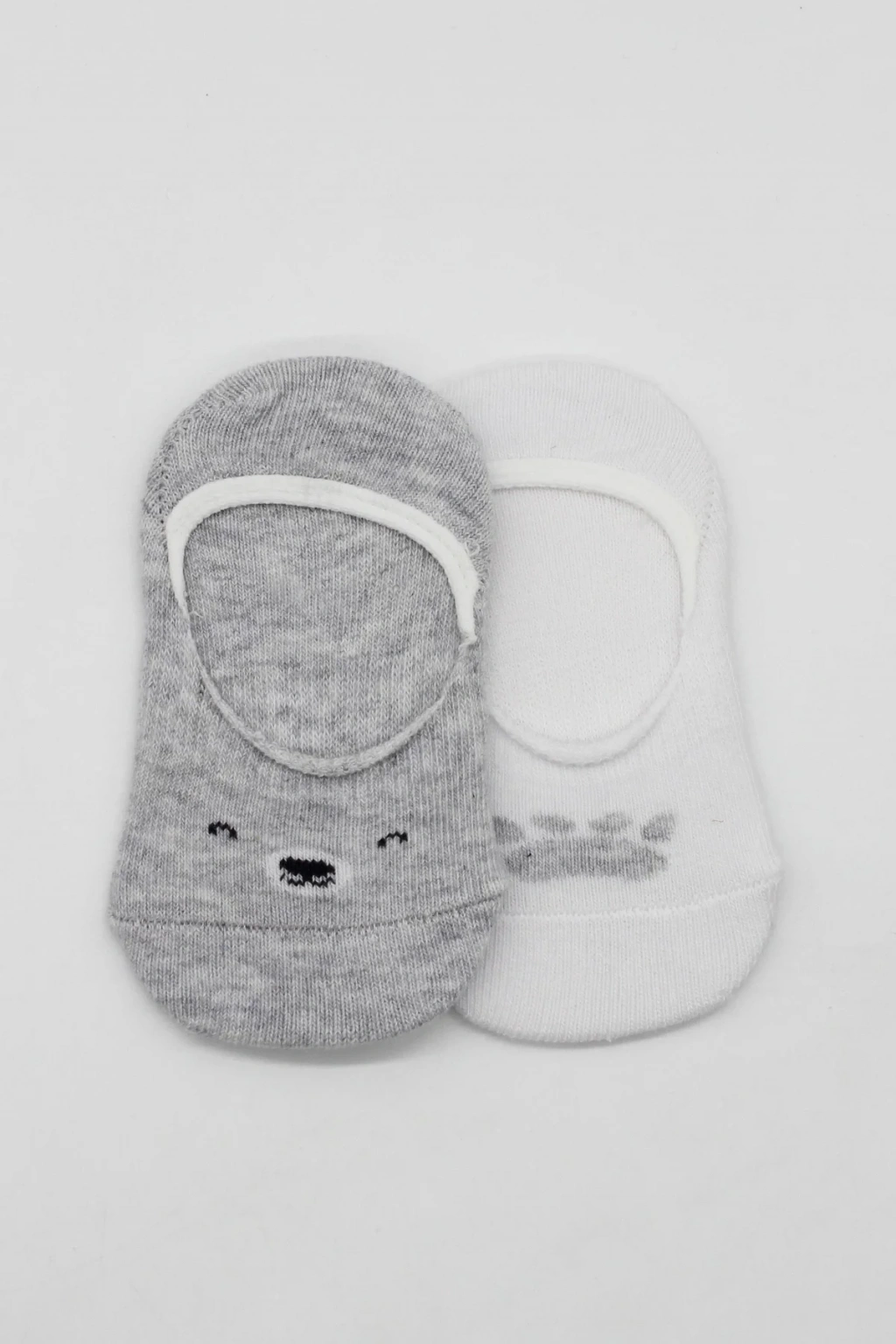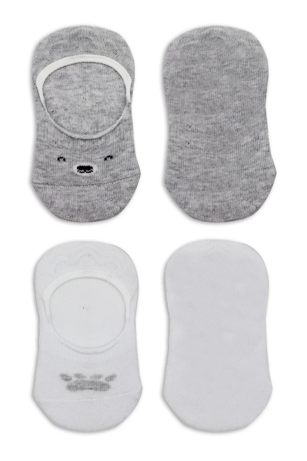 2'li Babet Cute Face Penye Çorap 30103 Gri Beyaz