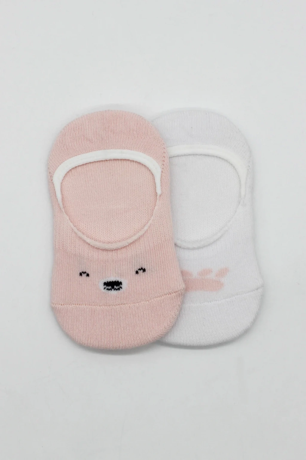 2'li Babet Cute Face Penye Çorap 30103 Pembe-beyaz