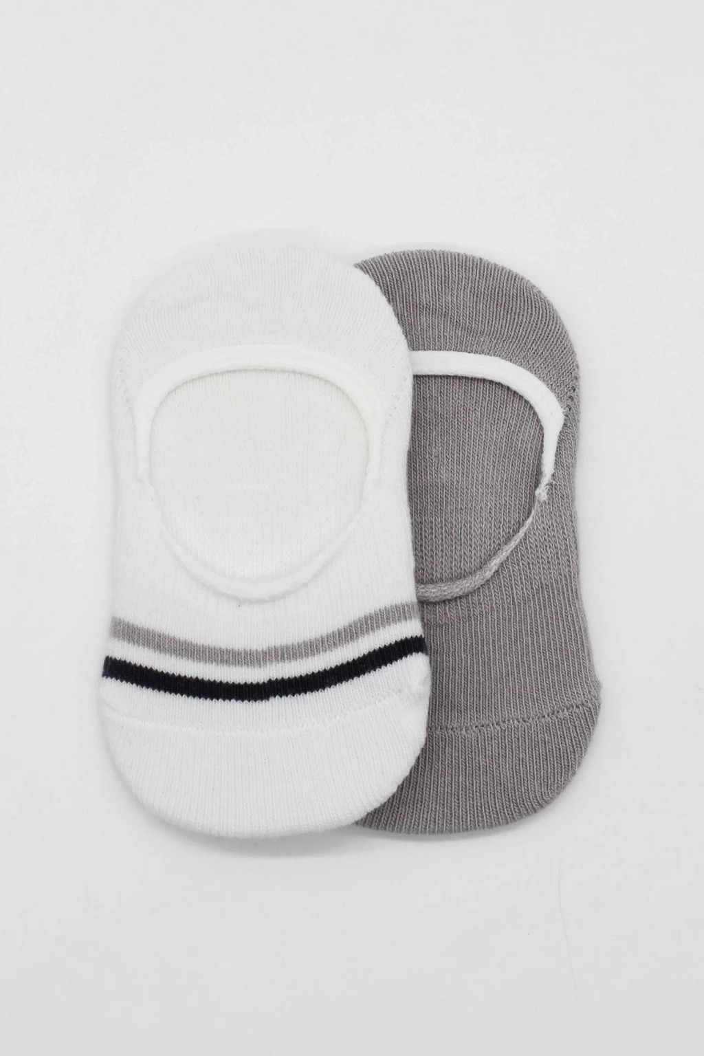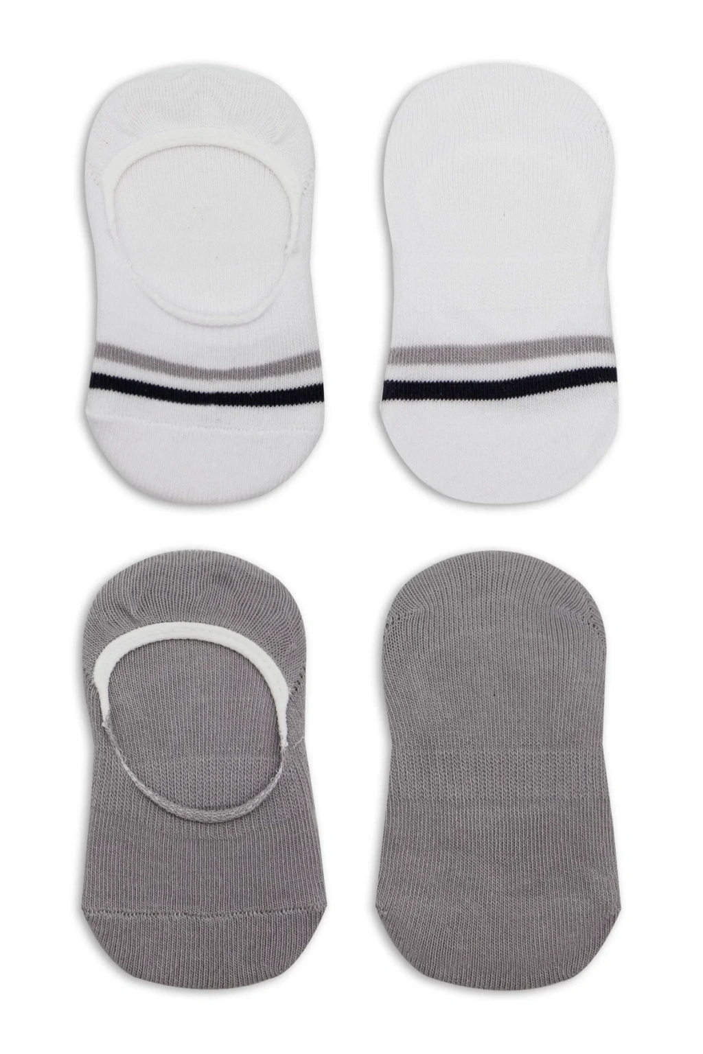 2'li Penye Babet Silikon Çemberli Çorap 30102 Gri Beyaz