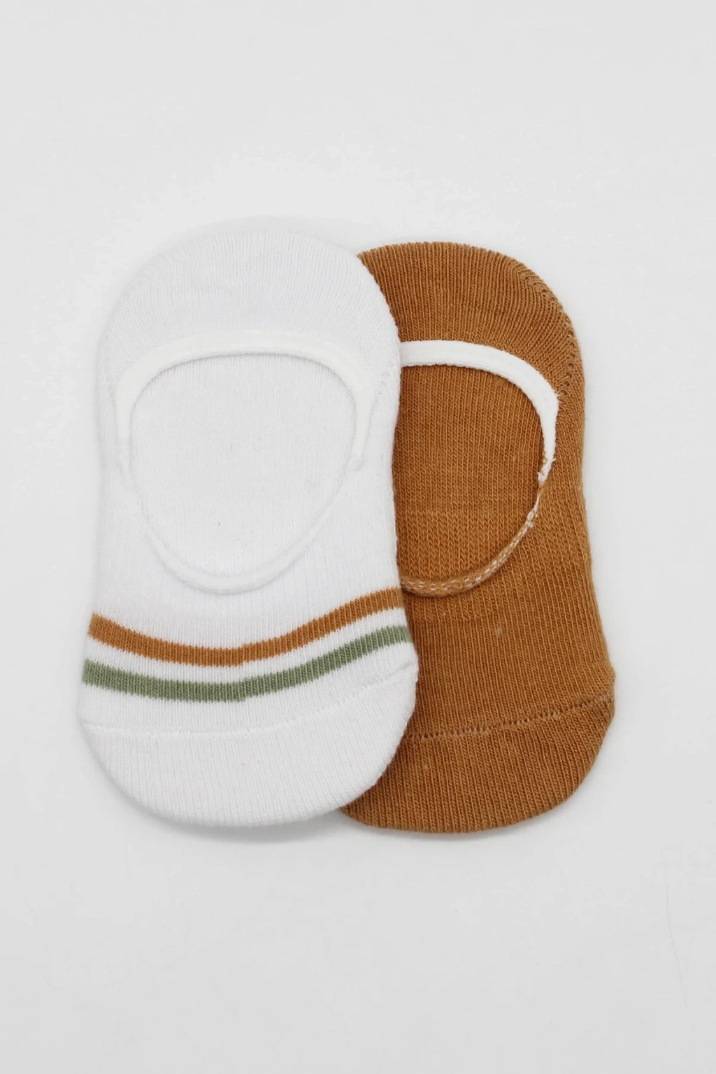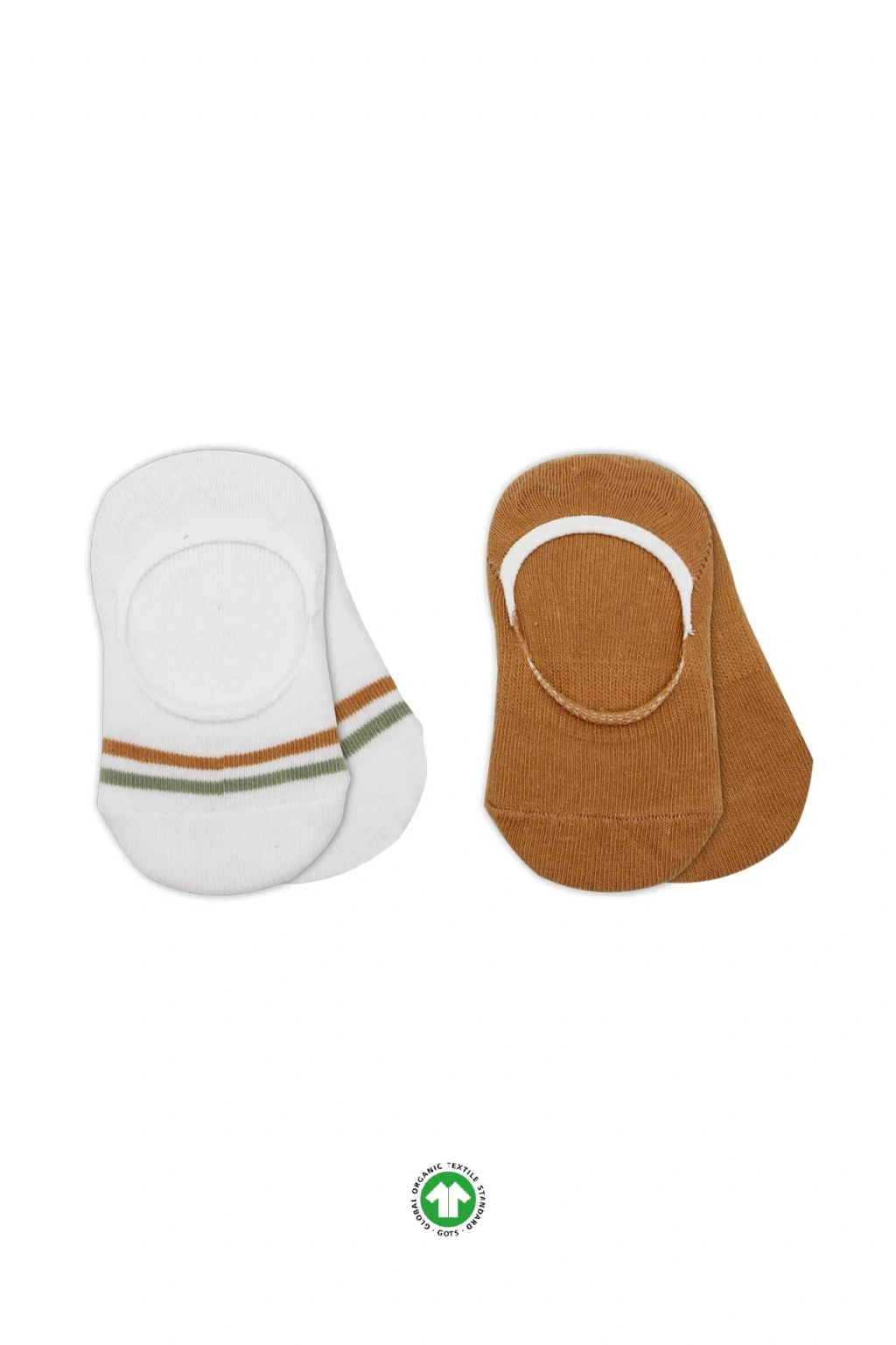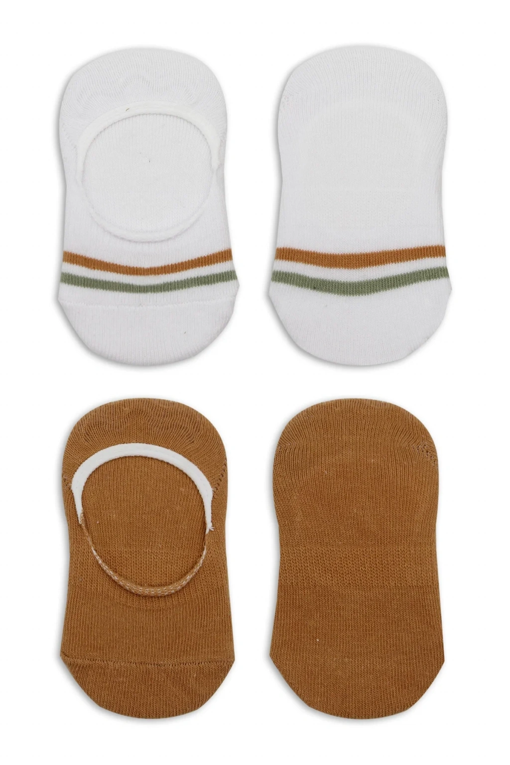 2'li Penye Babet Silikon Çemberli Çorap 30102 Hardal Beyaz