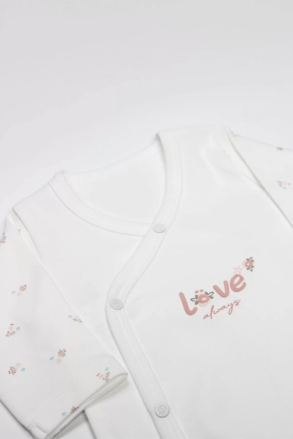 Flying Bloom White Yarım Kol 2'li Body 17118 Ekru Gül Kurusu