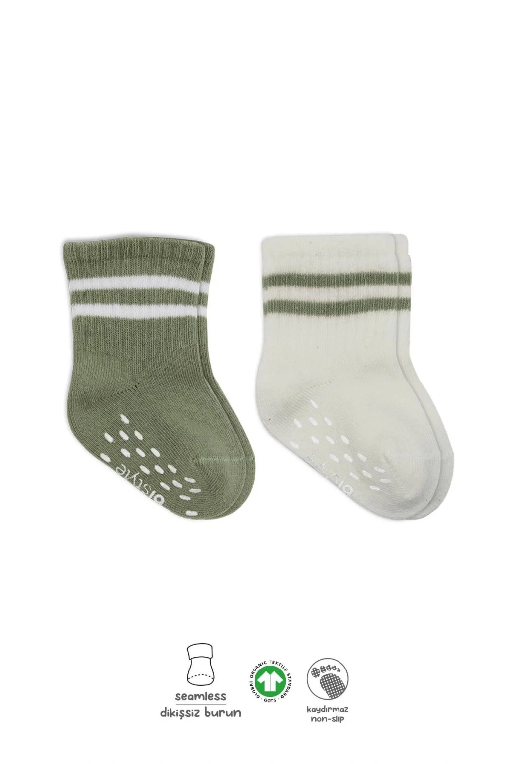 Paket İçeriği: Bistil Organik Dikişsiz 2li Çemberli Kaymaz Penye Soket Bebek Çorap