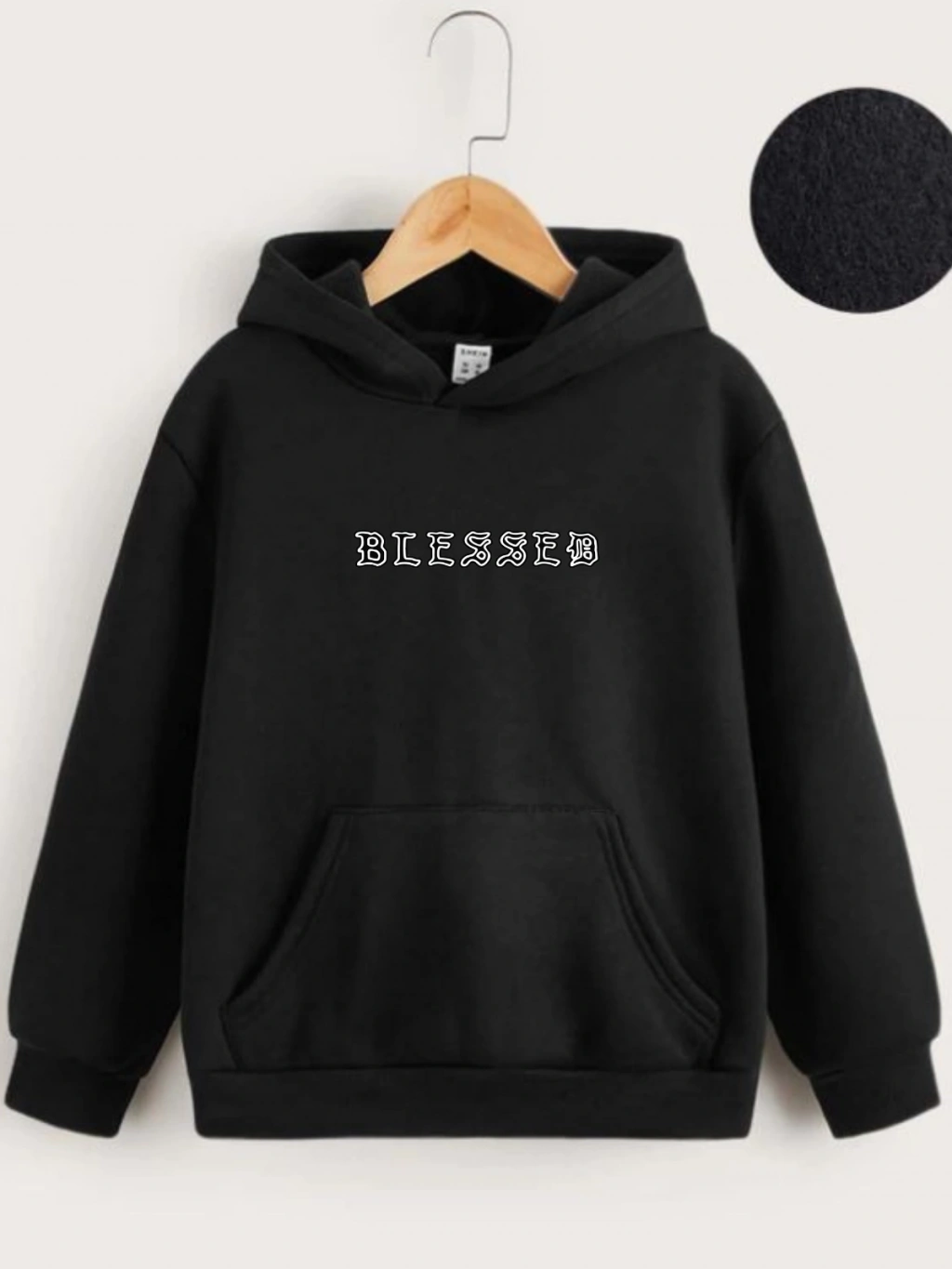Çocuk Kapüşonlu Ön ve Arka Blessed Baskılı Sweatshirt - Siyah
