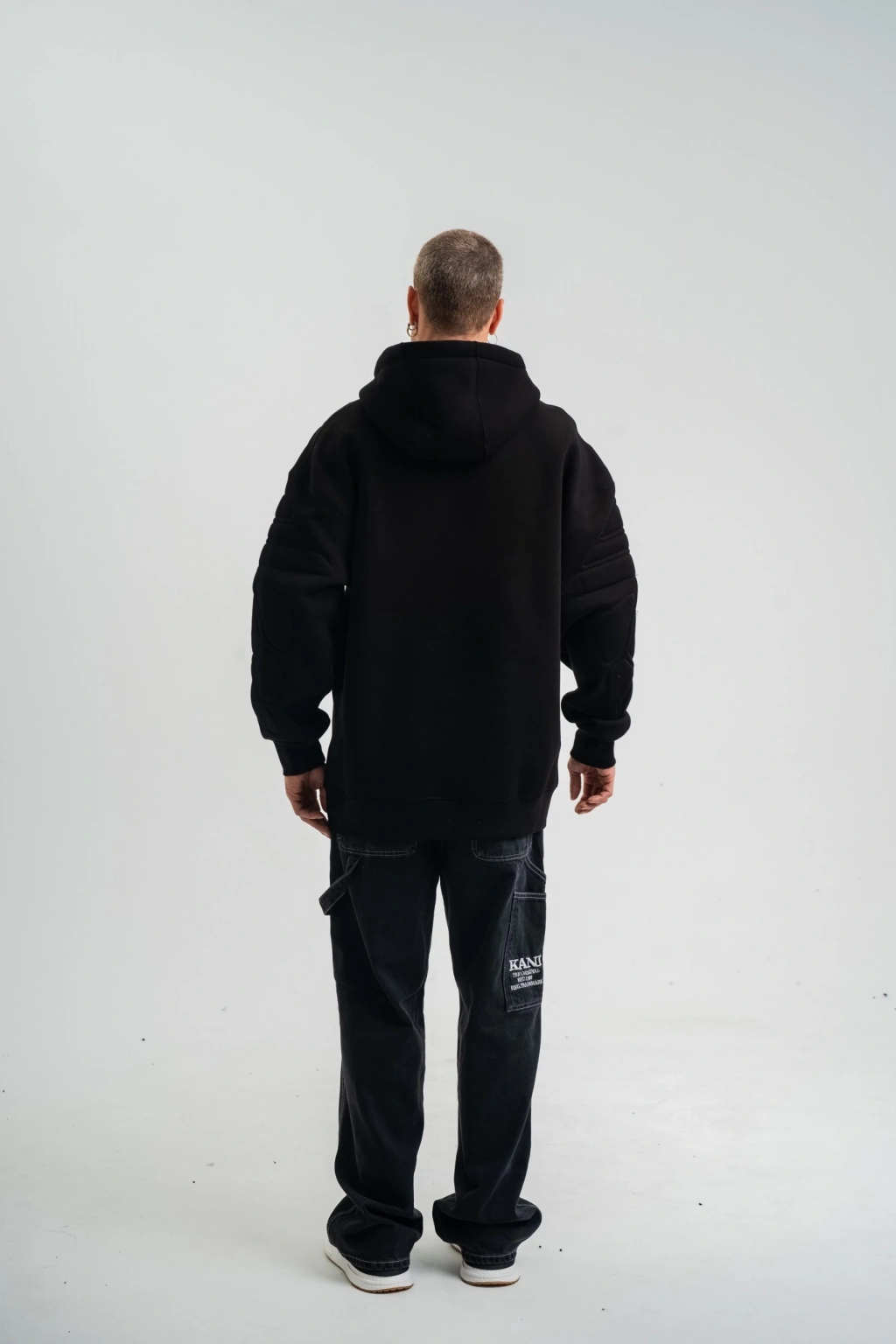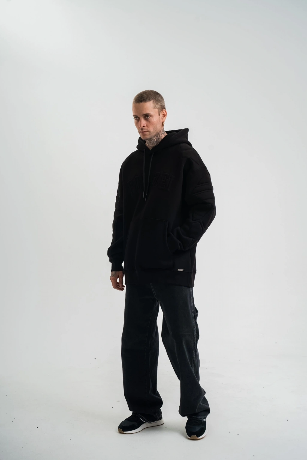 Double Oversize Kapşonlu Nakışlı SweatShirt - Siyah