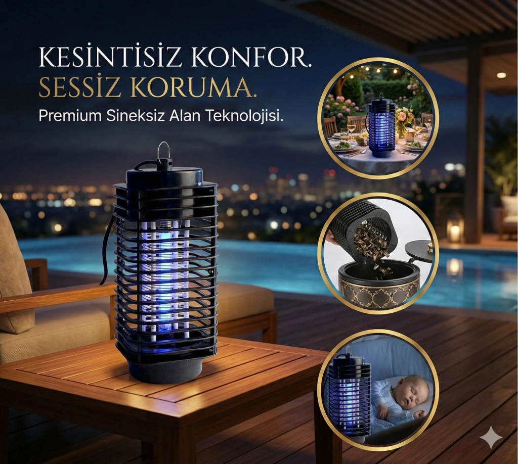 Özel ışığı sayesinde sivrisinek, karasinek, kelebek gibi haşereleri içine çeker