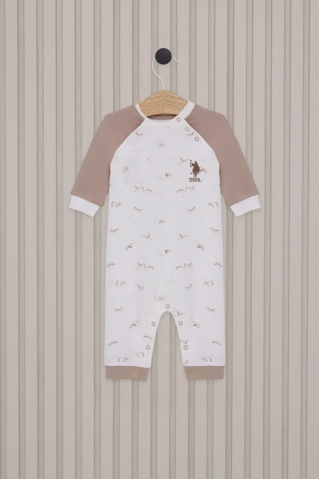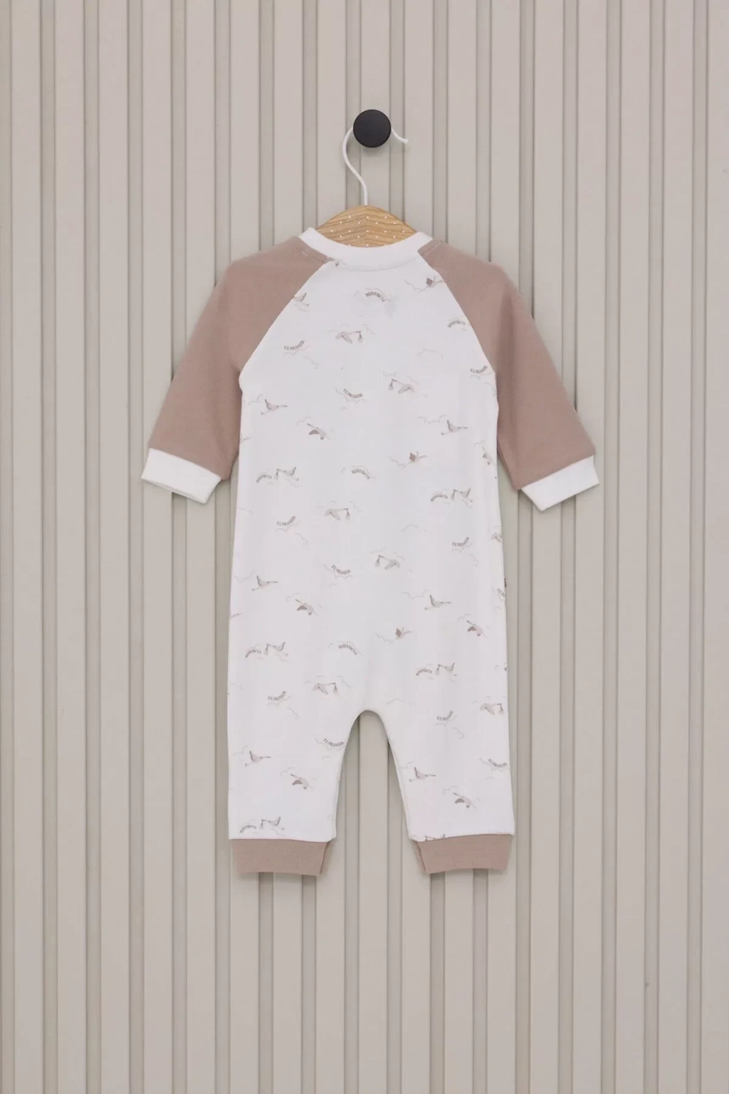 Erkek Bebek Uzun Kol Patiksiz Tulum Krem