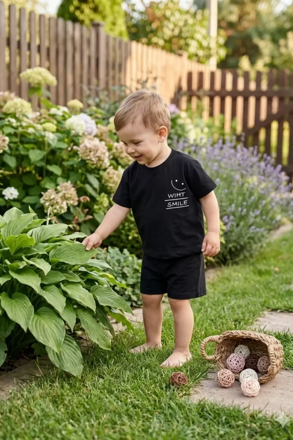 Erkek Çocuk Yazlık Şort Takım Siyah