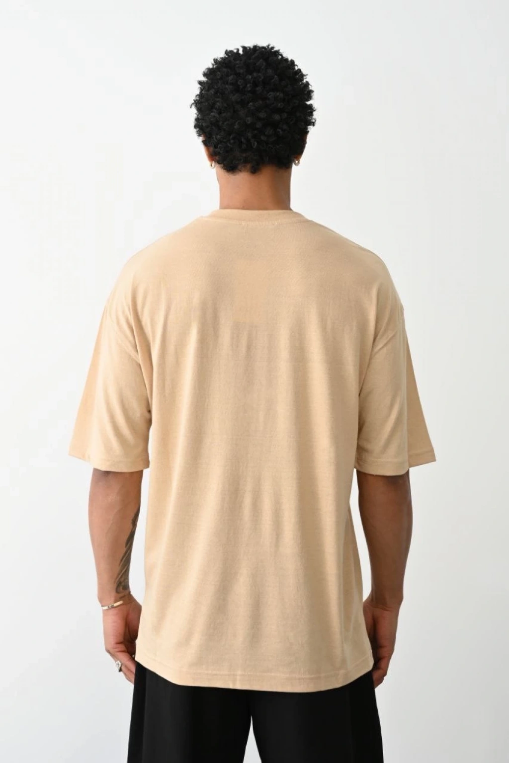 Erkek Düz Basic Bisiklet Yaka Kısa kol T-Shirt - Bej