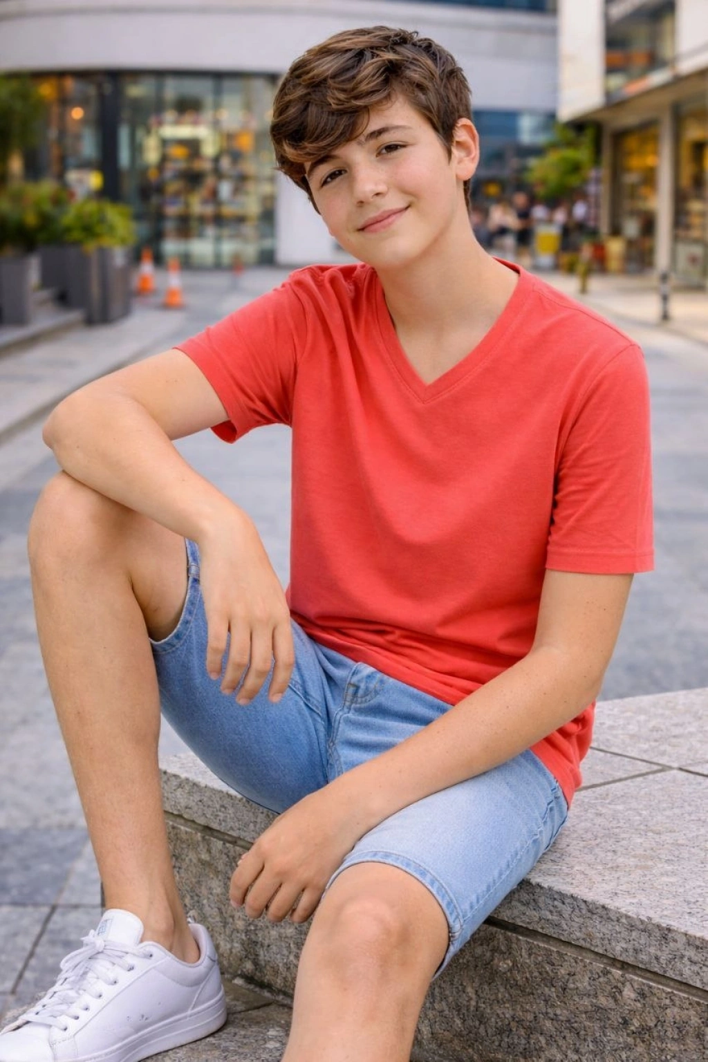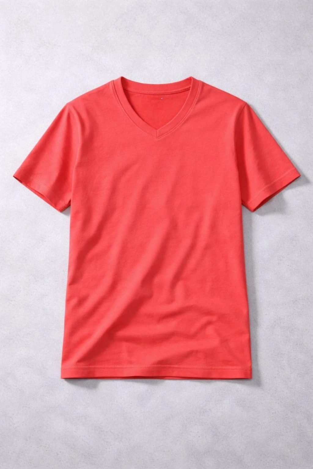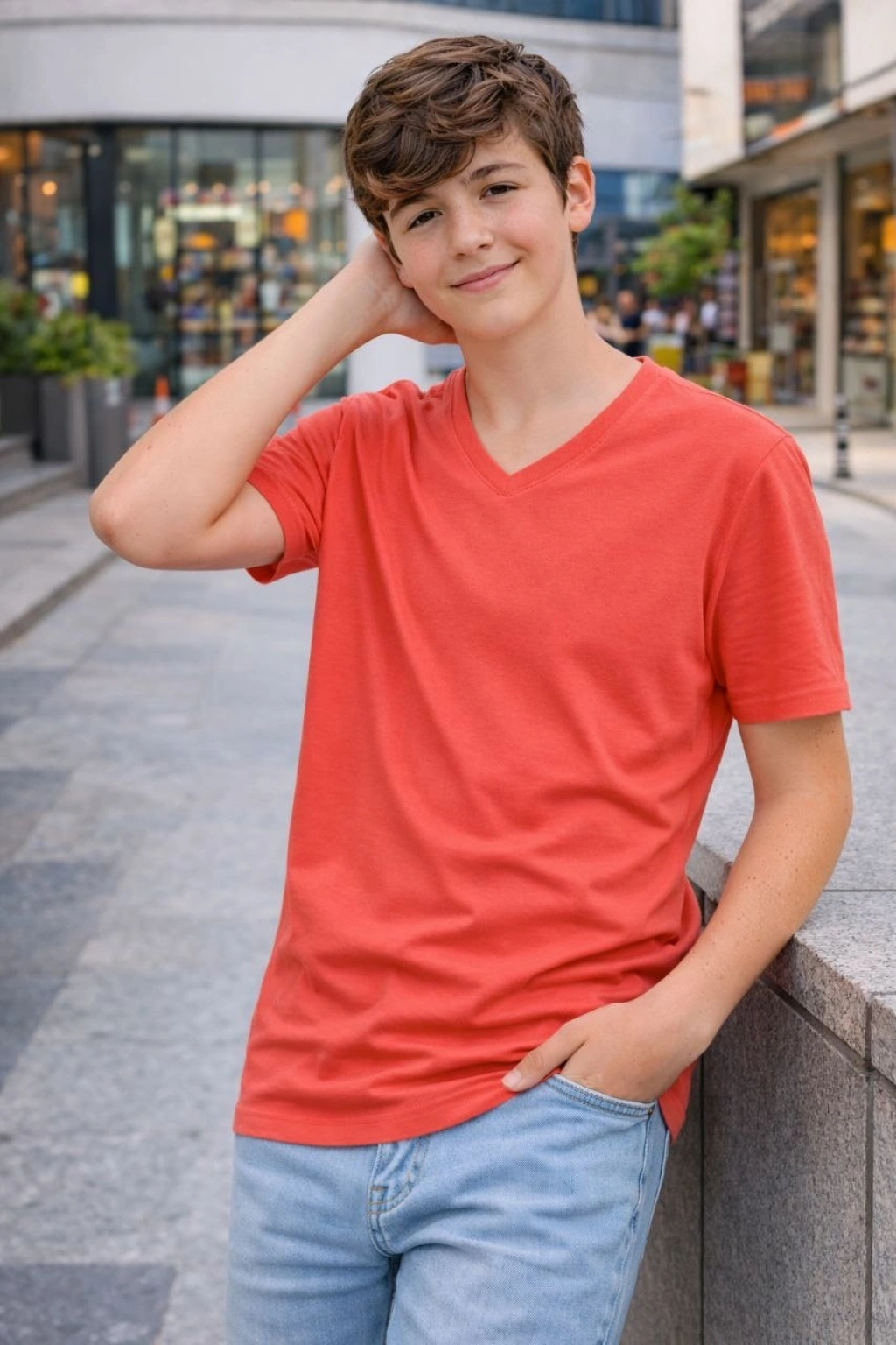 Genç Erkek Çocuk V Yaka Tişört Model - Nar Çiçeği