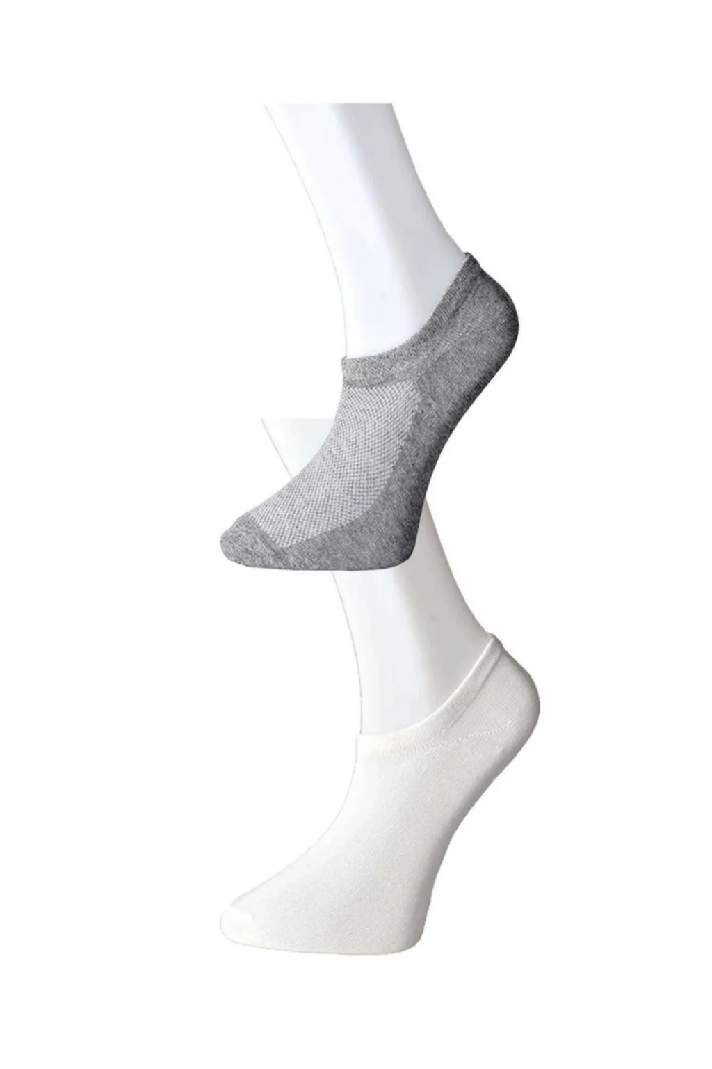 Gri ve Beyaz Erkek Görünmez Çorap 6 çift