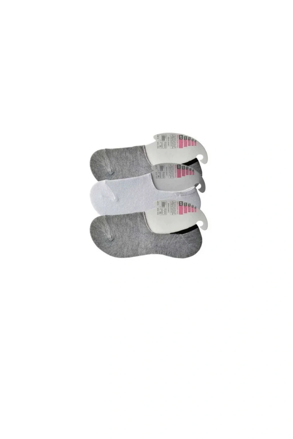 Gri ve Beyaz Kadın Babet Çorap 3 çift